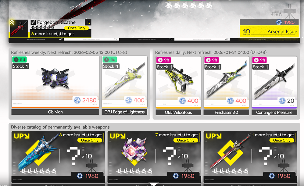 Previous thread: >>555659575>Official Websitehttps://endfield.gryphline.com/en-us>Official EN X (NEWS HERE)https://x.com/AKEndfield>Chartered Headhunting ScheduleJanuary 21st to February 7th --- "Scars of the Forge", (Laevatain)February 7th to February 24th --- "The Floaty Messenger", (Gilberta)February 24th to March 13th --- "Hues of Passion", (Yvonne)>Launch Reward Codes (Valid until January 29th)RETURNOFALLALLFIELDENDFIELDGIFTENDFIELD4PC>Twitch Dropshttps://endfield.gryphline.com/special/third-party-binding?channel=twitch>Voyage to the Stars (Ongoing until March 4th)https://endfield.gryphline.com/activity/voyage-to-the-stars/en-us/>Special Launch Streamhttps://www.youtube.com/watch?v=dz2g_D52NR0 [Embed]>Official Release Trailerhttps://www.youtube.com/watch?v=oJ00ggFb8A0 [Embed]>Official Release PV'shttps://www.youtube.com/watch?v=5Xm45NwWOlo [Embed]https://www.youtube.com/watch?v=UPpeeft1-8o [Embed]https://www.youtube.com/watch?v=tN80M6IEMo0 [Embed]>Wikishttps://wiki.skport.com/endfield (Official)https://perlica.moehttps://warfarin.wiki/enhttps://endfield.wiki.gg/>Blueprint Guideshttps://talospioneers.com/en>Stickershttps://drive.google.com/drive/folders/13KH3L6QPIKkVH7pBddv4uxwmwJsnOtklhttps://drive.google.com/drive/folders/1OuVtjv1k-9c3M6n7d4PX3CGG5bkwH04ahttps://drive.google.com/drive/folders/1AStB8bzFk3lSwMwczWPkFYCBrZe0vHOghttps://drive.google.com/drive/folders/1yS0lqUhxf8tBRtpDFfCU1y16IS2sSeF7>Fr/end/sSubmit your info, /end/min:https://forms.gle/Fo7BhZMKaKqiWyL19View other /end/mins:https://docs.google.com/spreadsheets/d/1YtxiDss0hgEQhLlZgpfzyGrJrzUcqDzOS9T6IH-BiVc/edit?usp=sharing