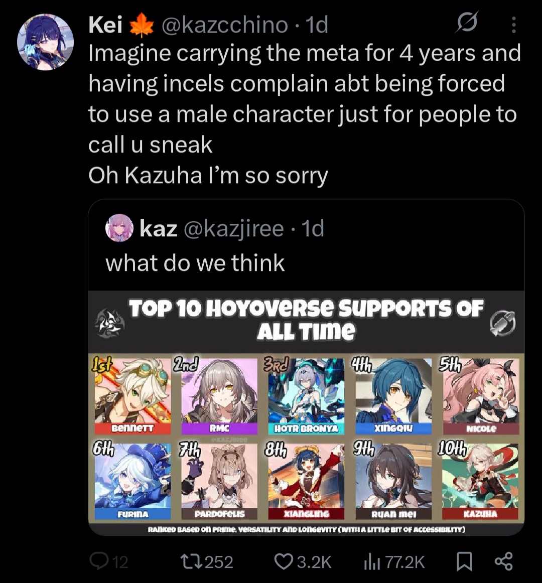 Damn /ourguy/ fell of so hardWhat the hell happened gig? Why didn't you support him when he was streaming genshin?