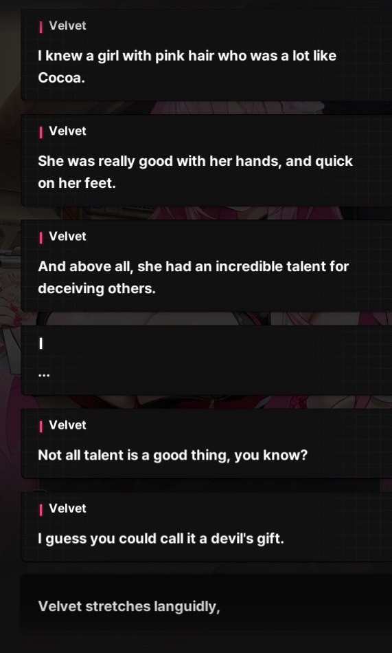 >Velvet appears on screen