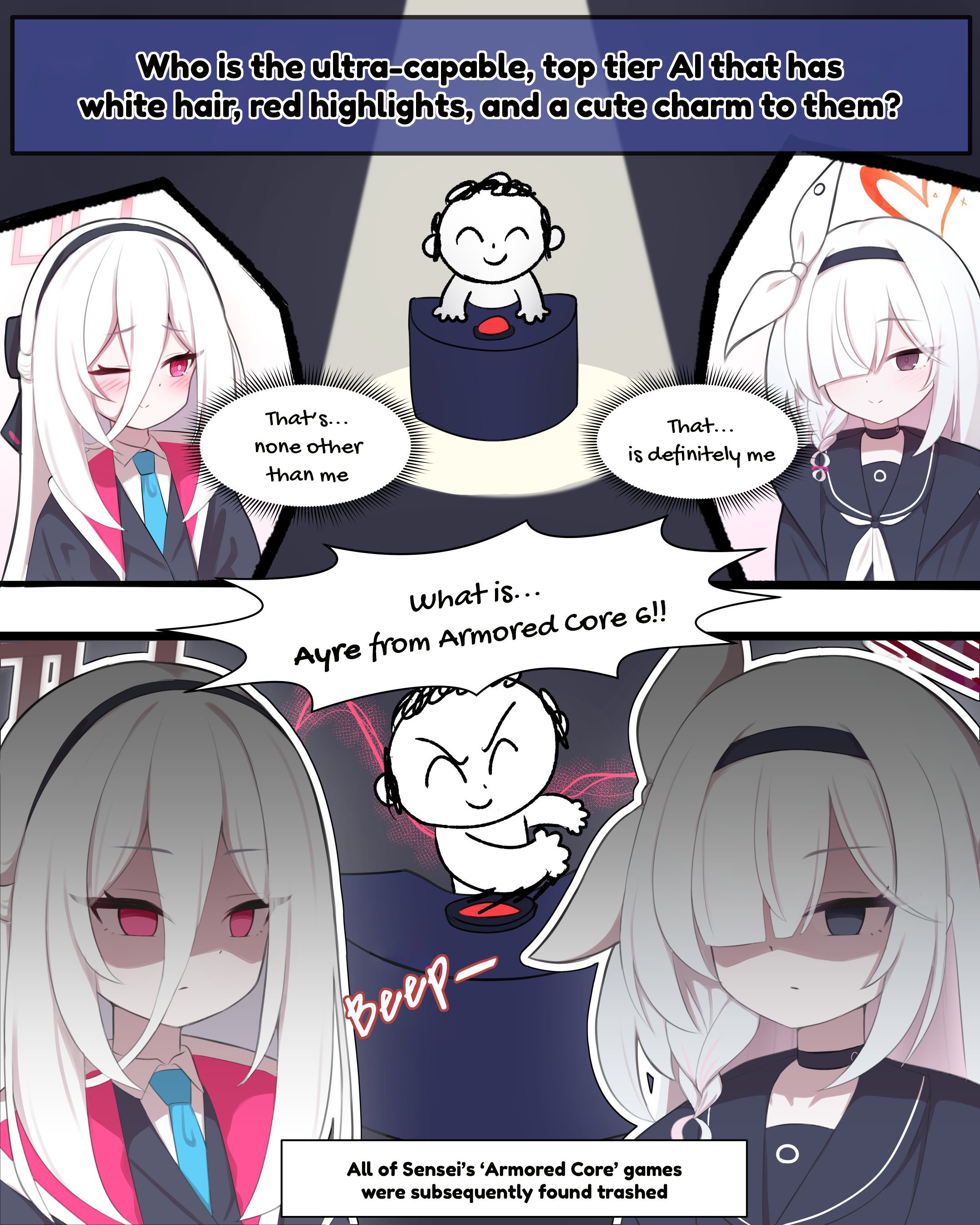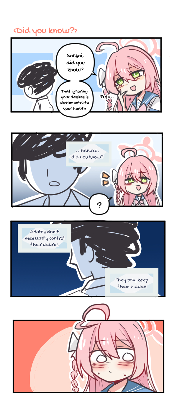 >>555756561Wouldn’t it be cool if Kivotos turned out to be a metafictional world and only Kei and Sensei knew the truth, leaving them as the last guardians of this place we all love?Doesn't that sound like a romantic story like none that has come before? I think so too!