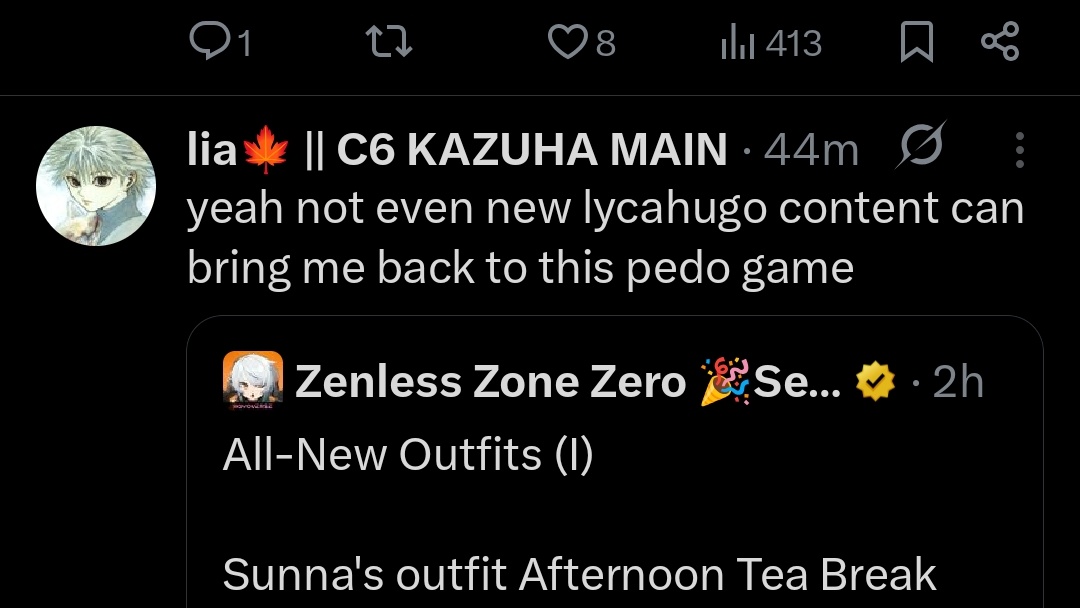>ZZZ idols>Endfield Gilberta>WuWa AemeathI'm actually winning so hard