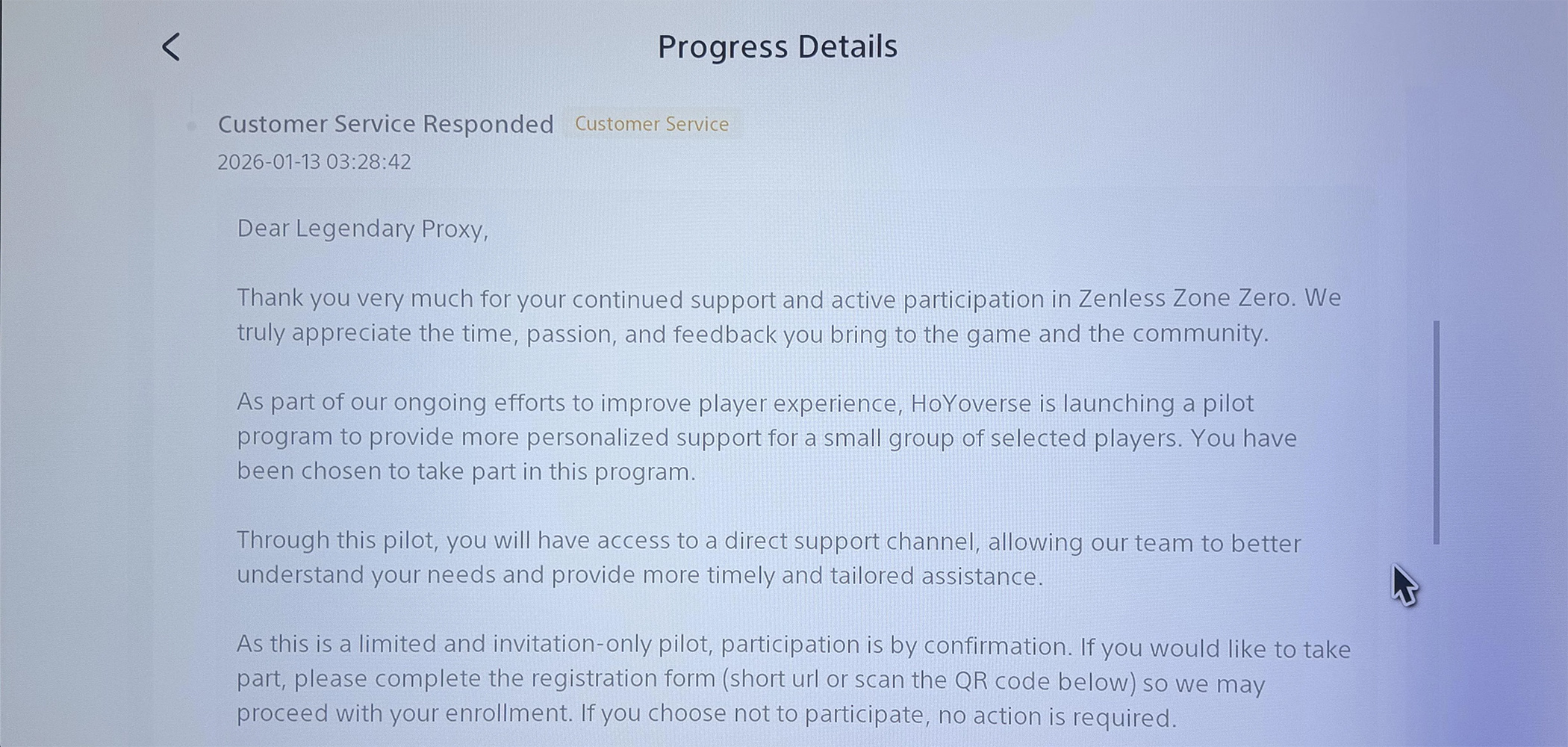 Previous: >>555741852>NewsVersion 2.6 "Encore for an Old Dream" Special Programhttps://youtu.be/oTRy9pZ4TYEAgent Record | Ariahttps://www.hoyolab.com/article/43039871Agent Record | Sunnahttps://www.hoyolab.com/article/43037944>Newest Trailer/Teaser/Character demohttps://youtu.be/HLv8Dz8t6Hkhttps://youtu.be/7wMz8mDyHgM (EN)https://youtu.be/triNgwM3bGI (JP)https://youtu.be/35fRoOYhE6Y (EN)https://youtu.be/BSKG5nhlj5s (JP)https://youtu.be/D_MtaEZRy3E (EN)https://youtu.be/eJBlfglfs-4 (JP)>Upcoming Events for 2.5https://zenless.hoyoverse.com/en-us/news/161728All-New Program 12/29 - 02/05Special Visitor 12/29 - 02/09Potential Hypothesis New Chapter Reforged 12/29 - 02/09Sword Seeker Chronicles 12/31 - 02/05Joint Investigation: The Divine Maze 01/03 - 01/22Shadow Riptide Clash 01/09 - 01/26Wish Filing Station 01/14 - 02/02Advanced Bounty: Area Patrol 01/16 - 01/21"En-Nah" Into Your Lap 01/21 - 02/05Angels and Delusions of Muse 01/21 - 02/05Data Bounty: Combat Simulation 01/30 - 02/04Angels of Delusion Training in Progress 01/30 - 02/09>Redeemable codes (claimable in-game or online)https://zenless.hoyoverse.com/redemptionZENLESSGIFTZZZ25MINAZHAOISFREEShunguangWinterGiftZZZ20265OZ2HDP95IZZZANGELSDREAMINGANGEL>Resources and useful linkshttps://rentry.org/zzzlinkshttps://rentry.org/ZZZ-Friendshttps://rentry.org/ZZZ-Guilds>/zzz/ OP pastebin (use this if making new thread):https://pastebin.com/PzbMf13P