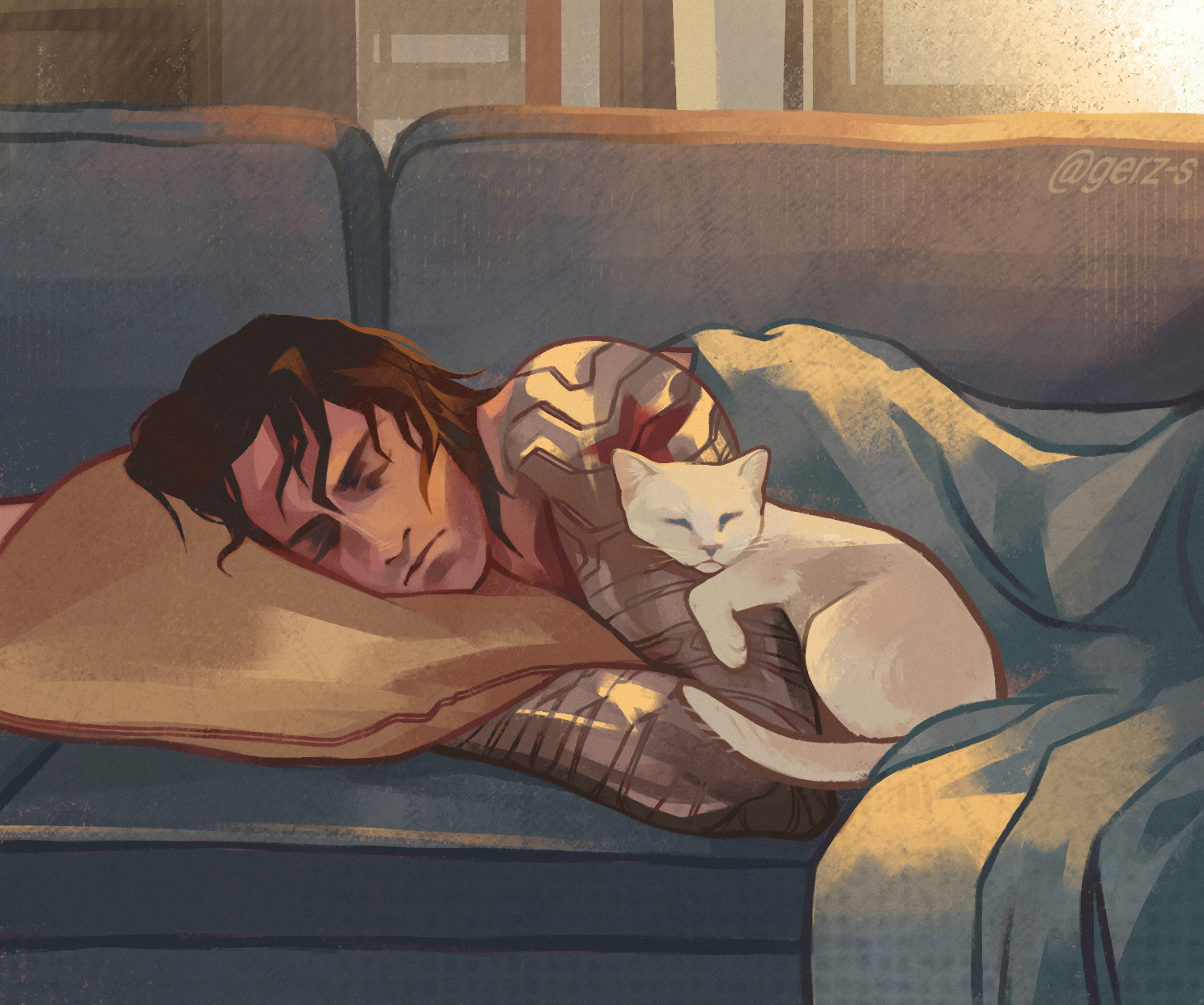 >while I'm stunned, Bucky positions