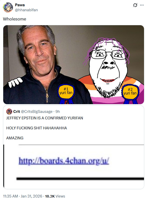 >>555797256>Epstein is a yuritardGuess Shaoji made the right call killing yuri in HSR
