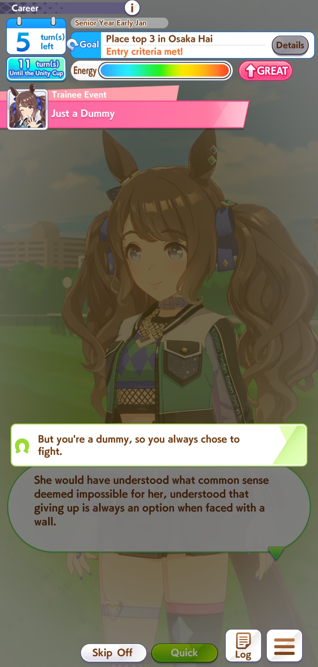 I almost forgot to finish that stupid Hopeless Stakes 5 career requirement but then I remembered that I could simply...