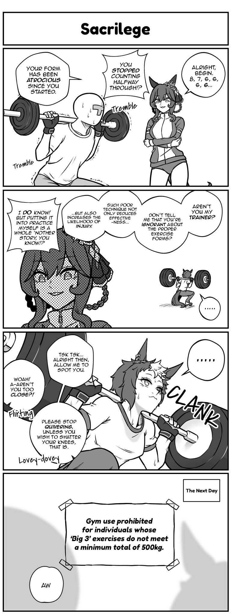>>555789703Gentil trainer probably ends up breaking the human record for the gym by the time she's done with him anyway, so it works out.