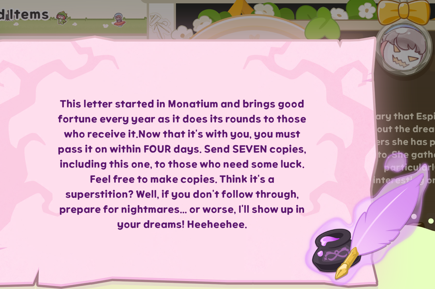 Wasn't a fan of that event ending. I wanted emotional fricle picota moment. While I like having a fun self insert that is literally me like kyoshu, I cant teach picora magic and I will ignore her while I tardwrangle other chibis.