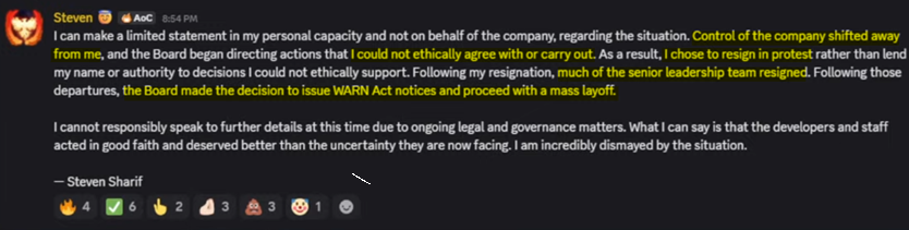 >>555867441Steven sold out to VCs, left the company, and now the board of directors created by the VCs he sold out to are laying off a shitload of the team.Literally took the money and ran.