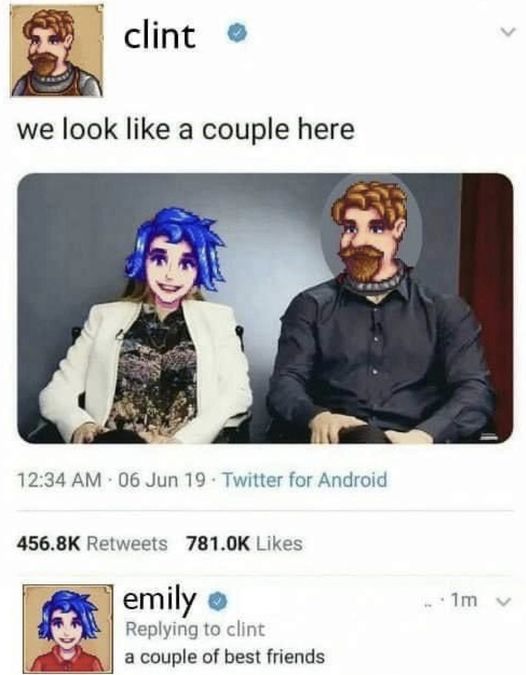 The ONLY interaction in the whole game that crosses a line is clint can ask for advice on how to talk to women and than immediately hits on emily even if you are married