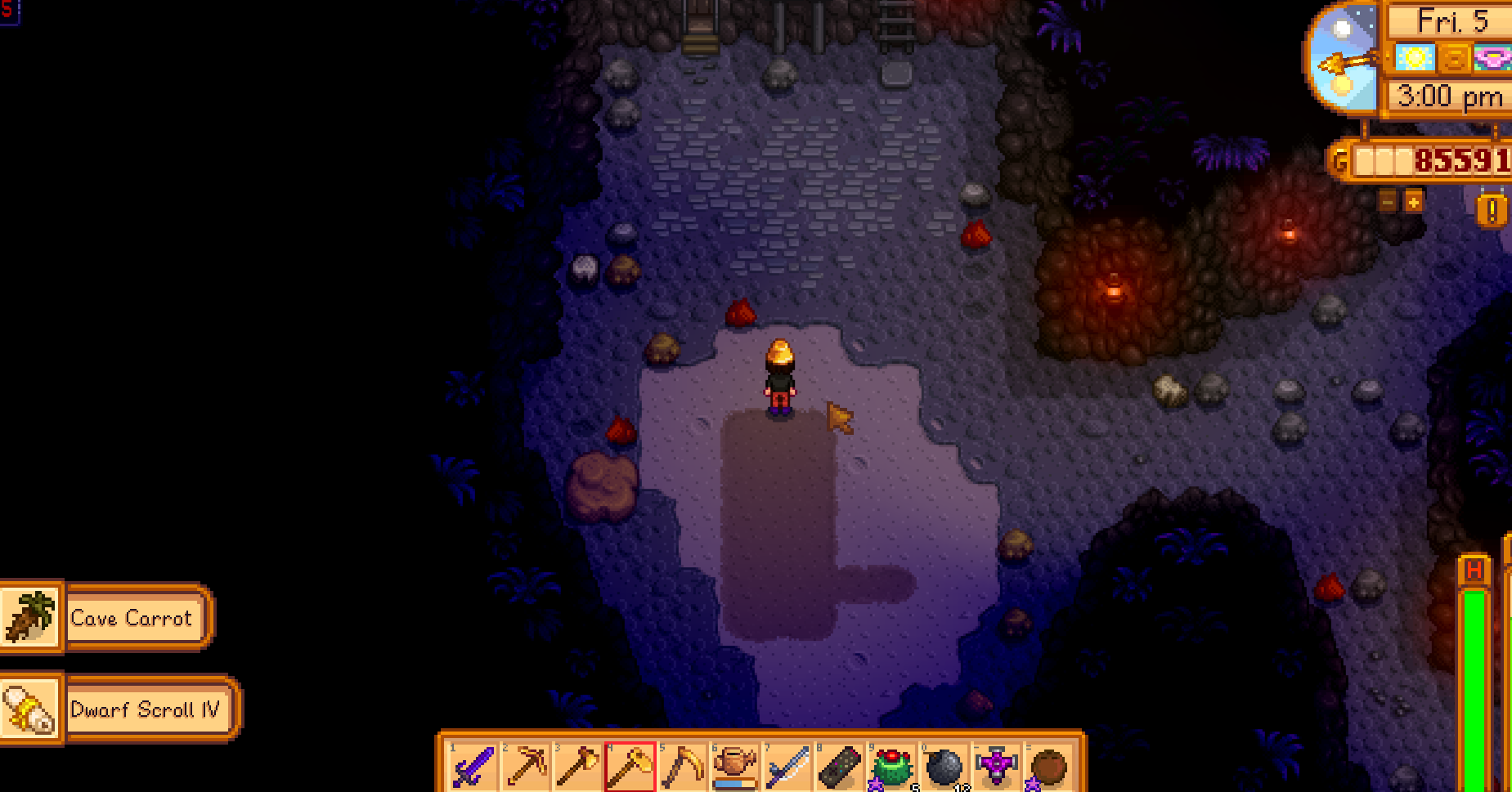 The quarry mine where you get the golden scythe. Right in front of the entrance