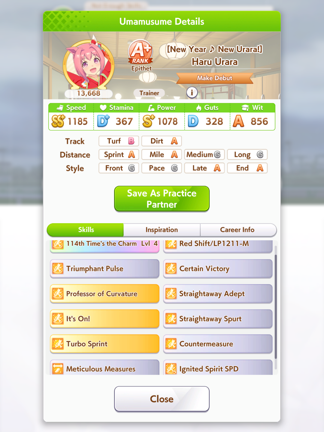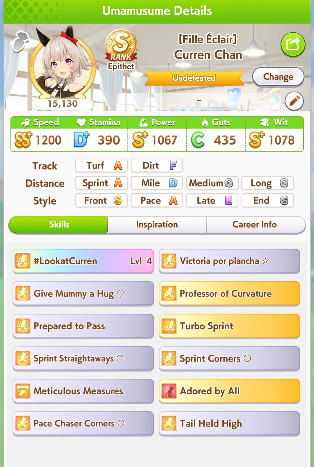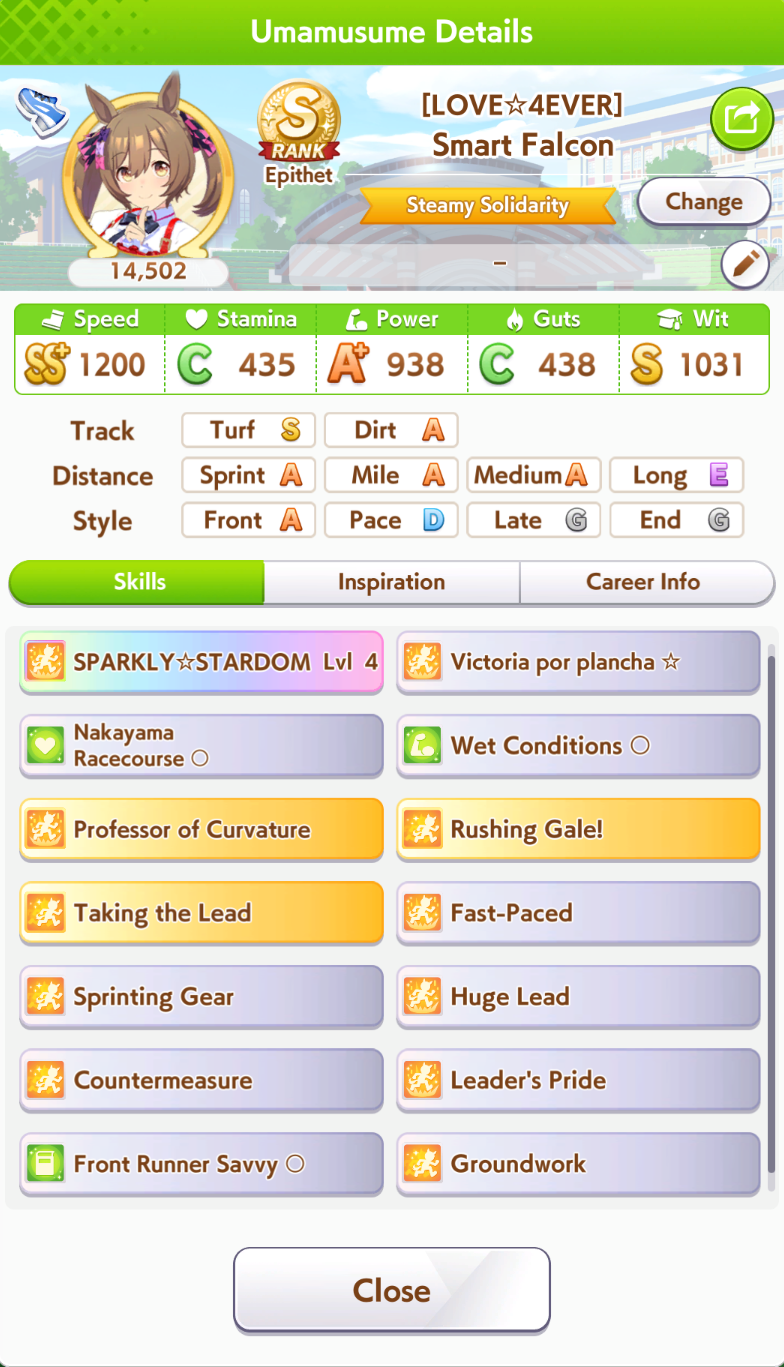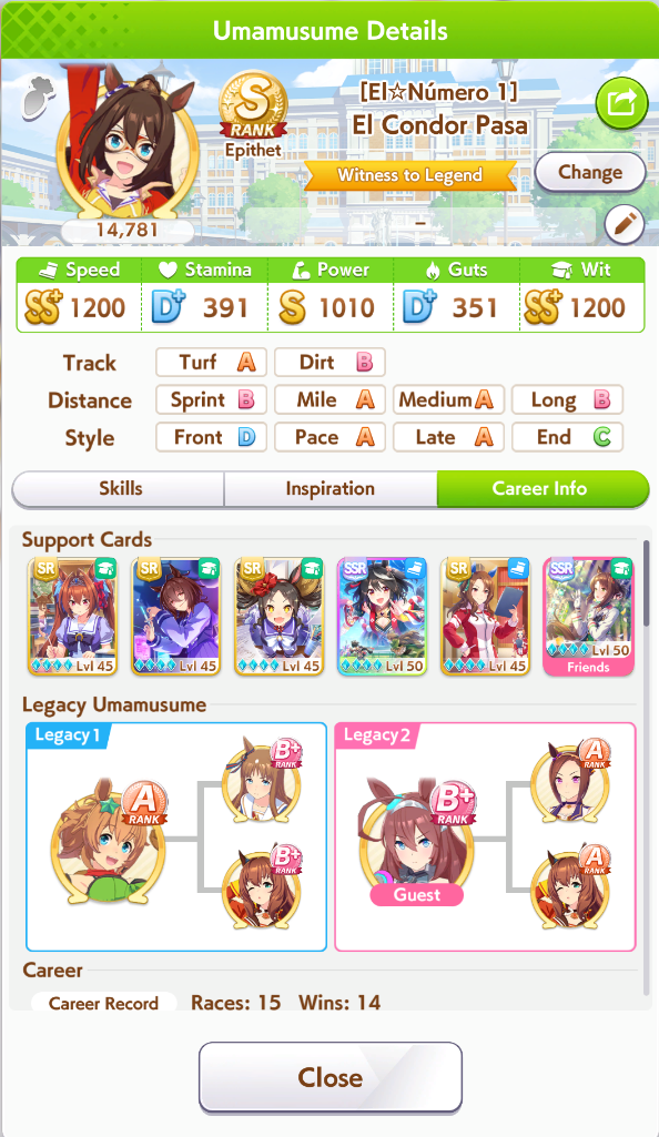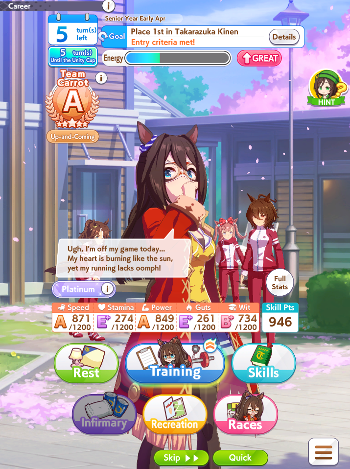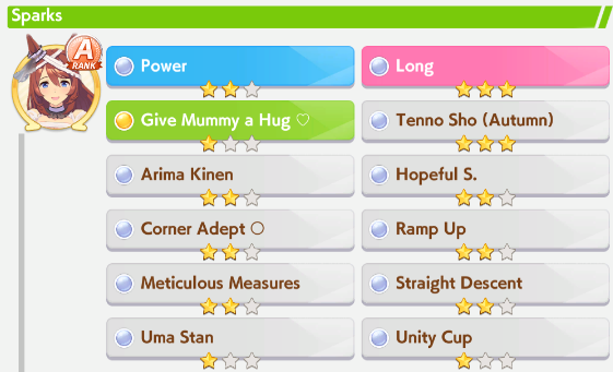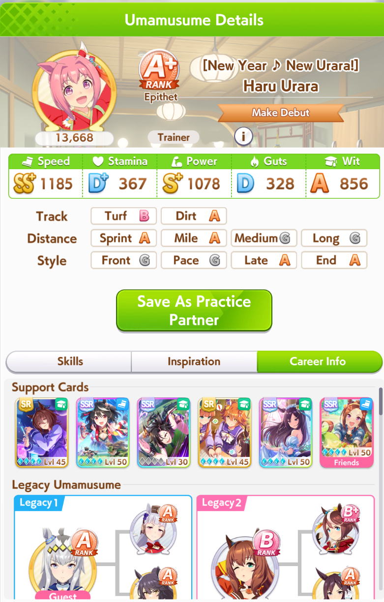 >>555851730I'm actually tempted. Part of the reason I'm mad is because it didn't turn into a god run until Senior Year, and when I whiffed the second inspo I decided to turn it into a parent run so I sunk 360 SP into stam skills so I could reliably win races. Then my stats went crazy. Because of fucking course they would