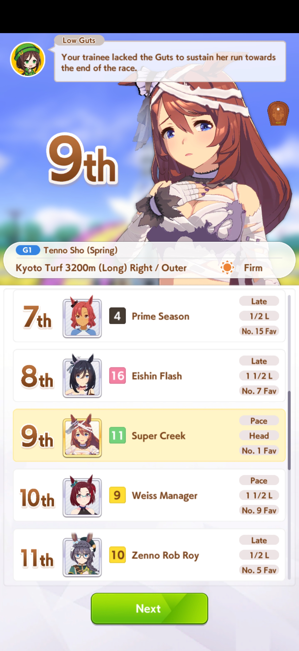 >failed at kikuka sho for sprint ace creekNyoooo. How much stam is needed? 300 and change to late?