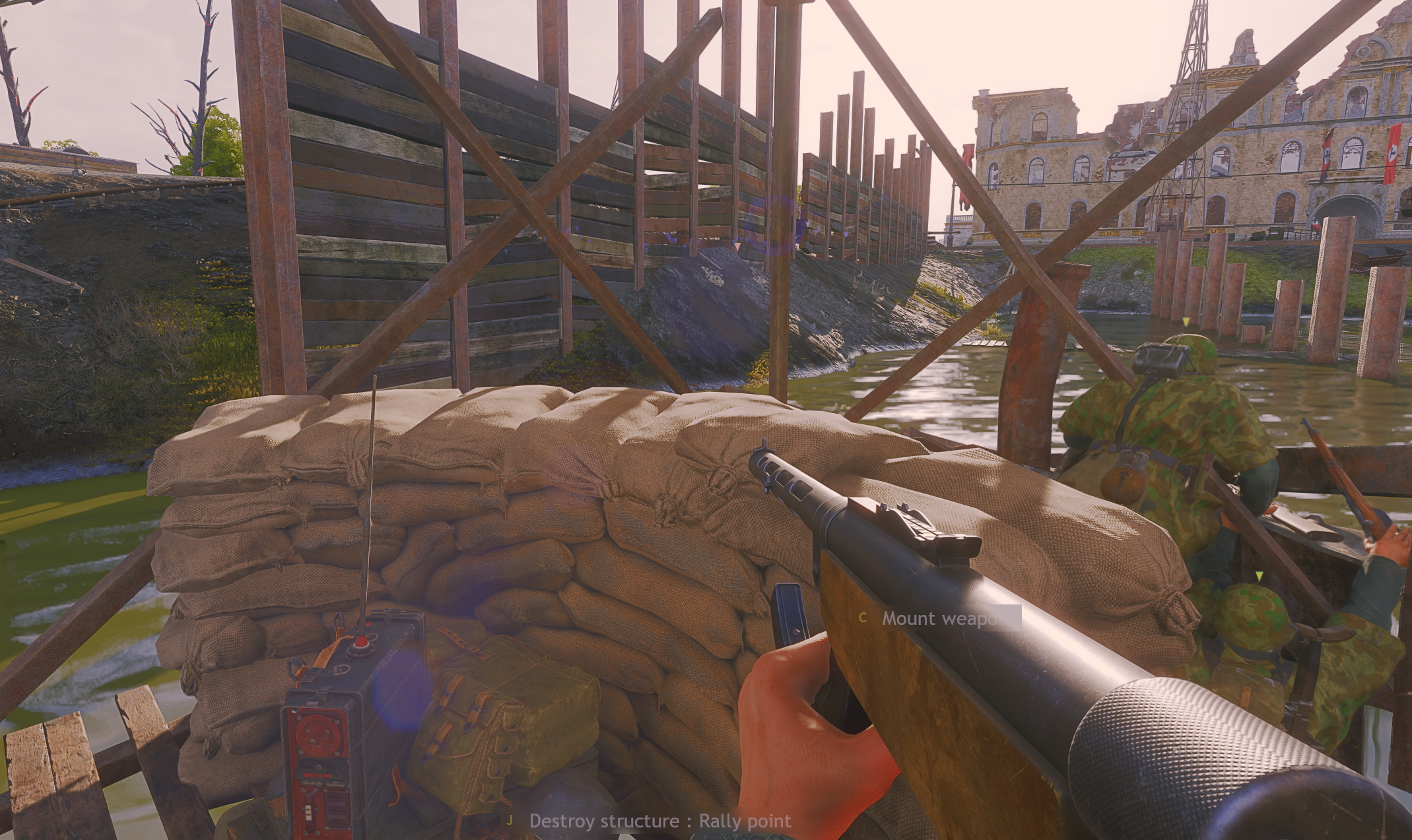 the other day i built a rally point out in the open and built two sandbag fortifications to protect it then a blue enemy came and dismantled themi just stood there watching in disbelief as he did it