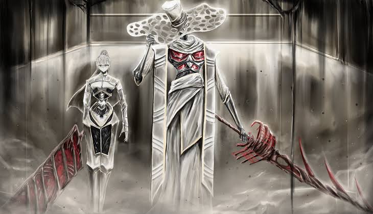 >>555889124>>555888846Honestly killer designI love the juxtaposition between the pompous whiteness and the equally elegant yet bloody flesh sword