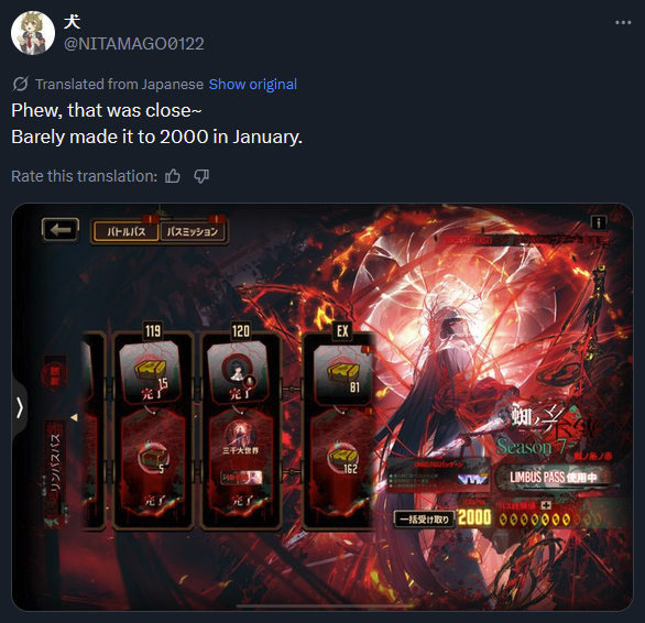 >Limbus made 3 million in January on mobile aloneThe season pass really is the big seller holy shit