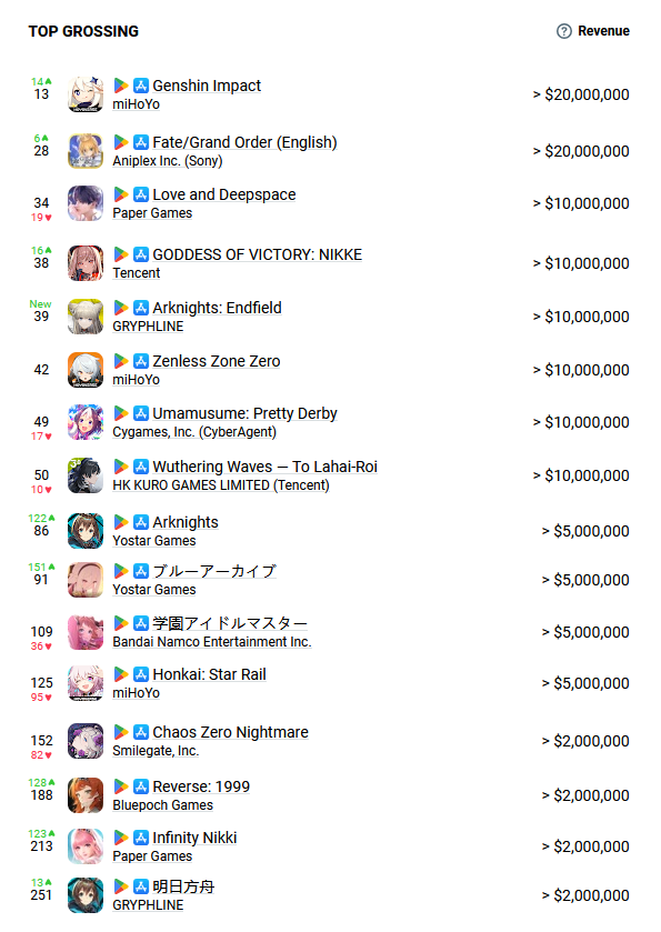 >>555889628Stupid mobile numbers. Doesn't matter much since most 3d gacha make their revenue off of the PC clients. Wuwa made pretty much a billion last year(earnings reports) despite only have 15-20 mil mobile revenue average a month (according to sensor tower anyway)