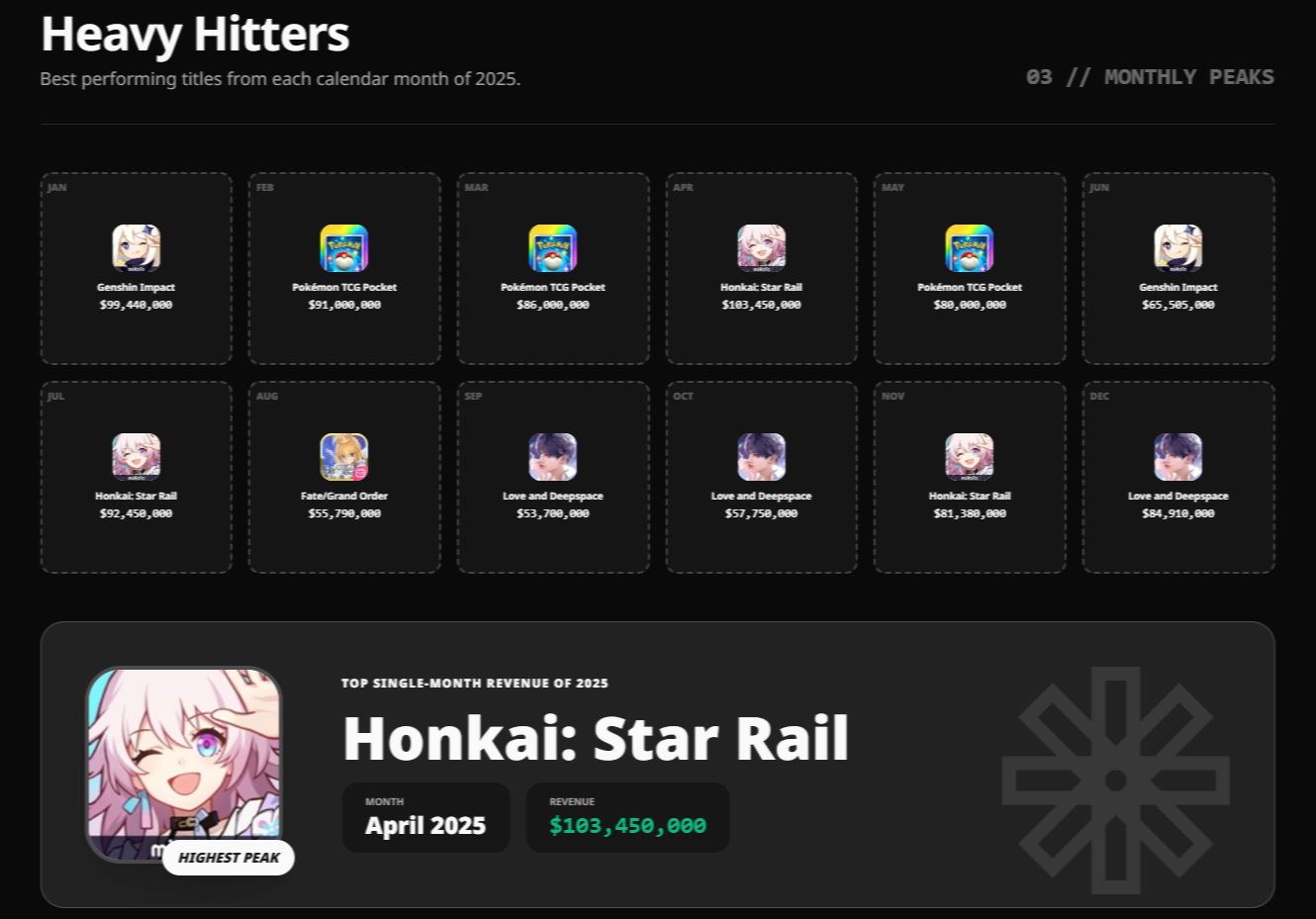 Thank you for taking the crown for lowest monthly revenue ever achieved by a nu-hoyo game. Primarily played on mobile unlike Genshin and ZZZ btw