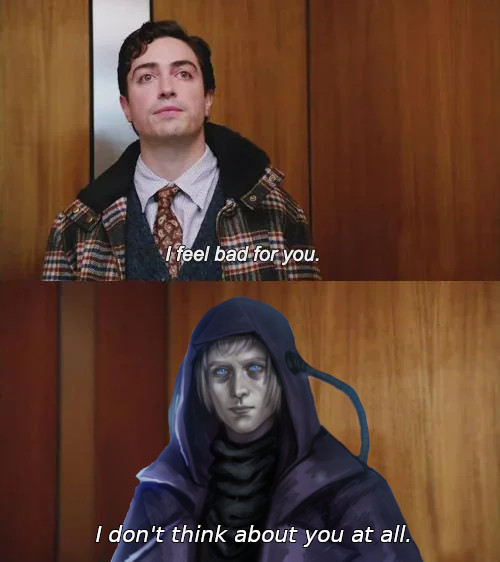 they can't write proper interactions, they all feel forced and by this time after 3 games I just know they will double bamboozle me into some kind of sick relationship where my loved one will die in some weird way, or some shit