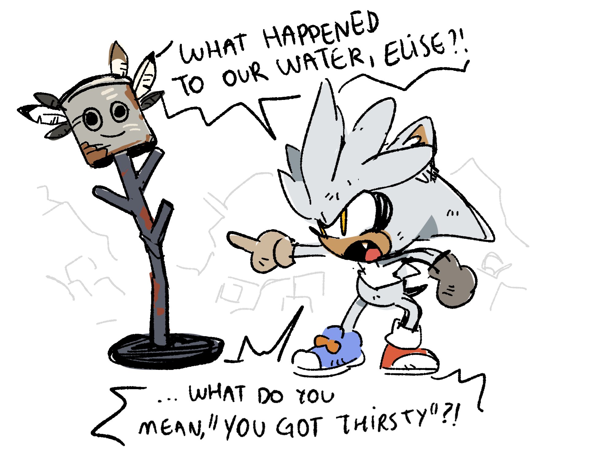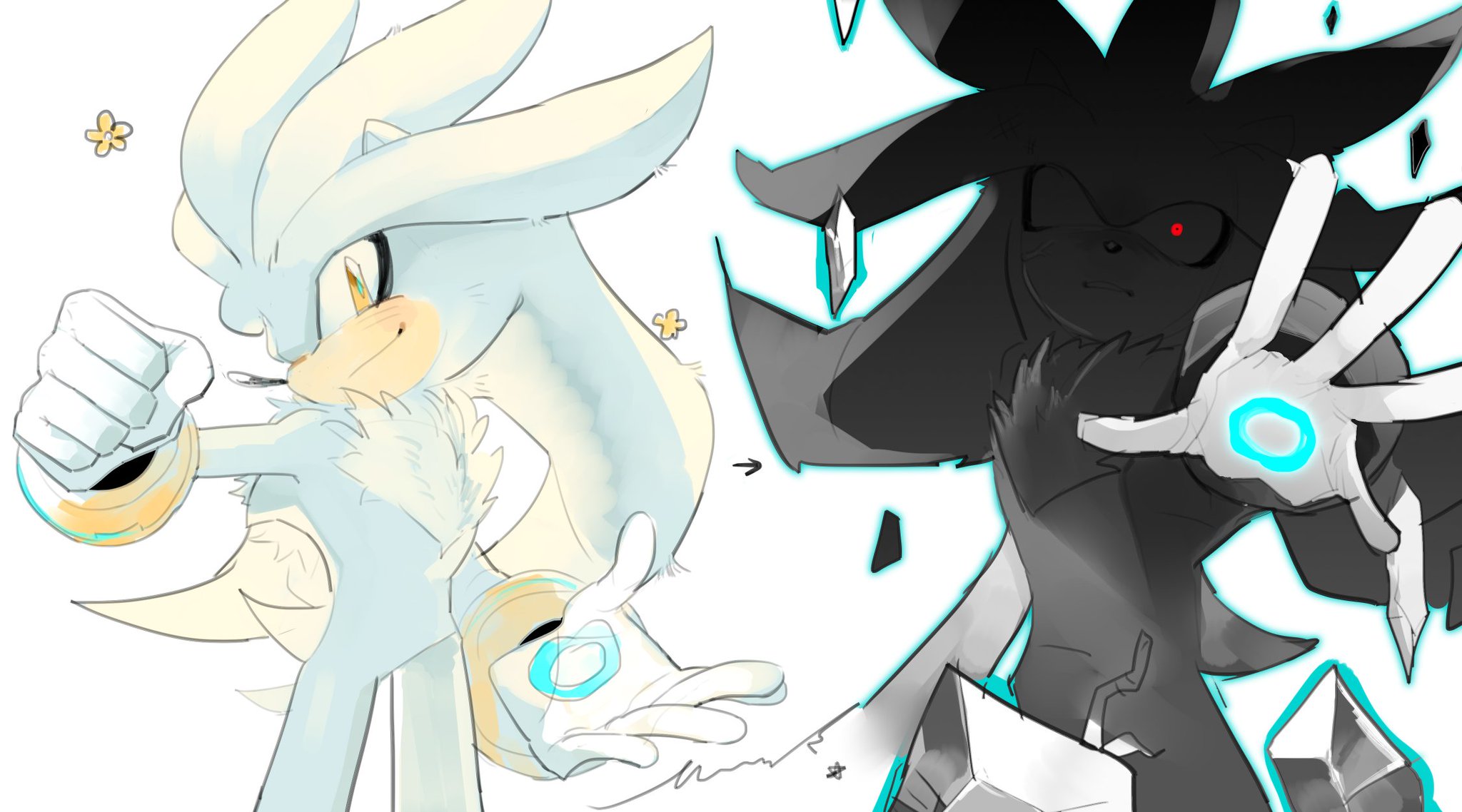 >>555958528That Silver is him in the past, before becoming a psychic, since classic Sonic is also his past self.The classic Silver you want would look something like this, just losing the details on his shoes/rings and changing proportions.