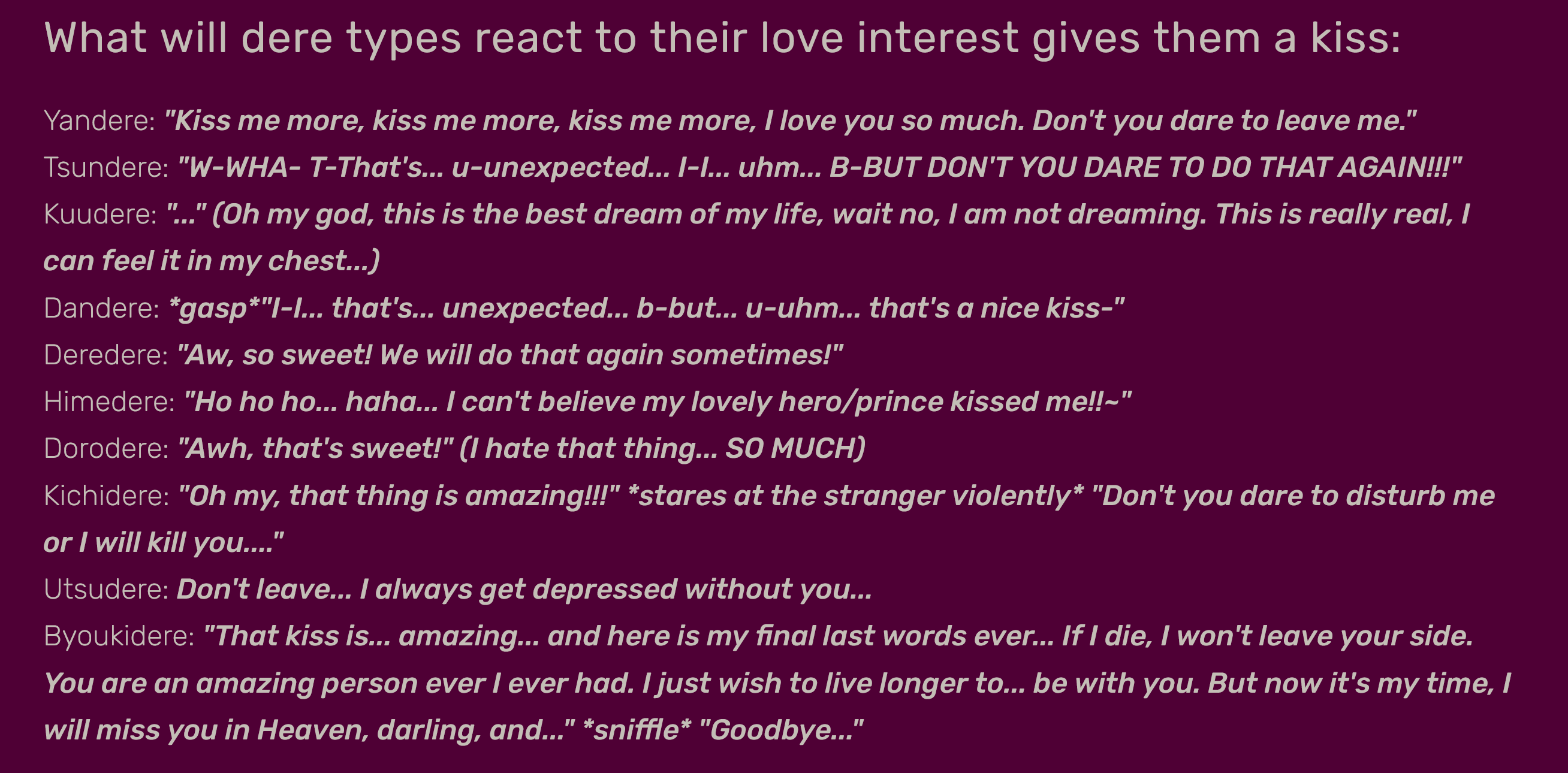Fiona appears out of nowhere, gives you this look, and is inches away from your face. What do?