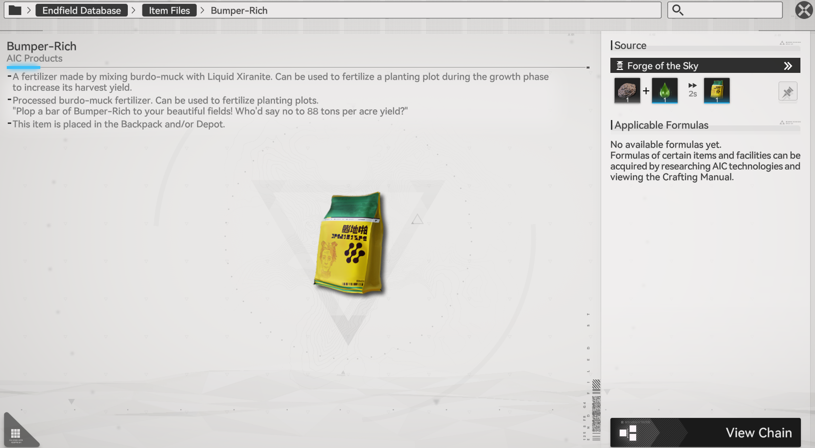 >>555928481There's a fertilizer in the planter menu that says it's produced in forge of the skies. Basically, it's worthless because you need to waste forge capacity on it.