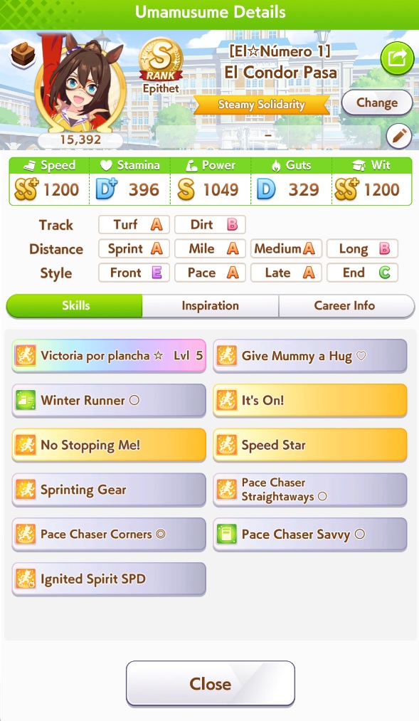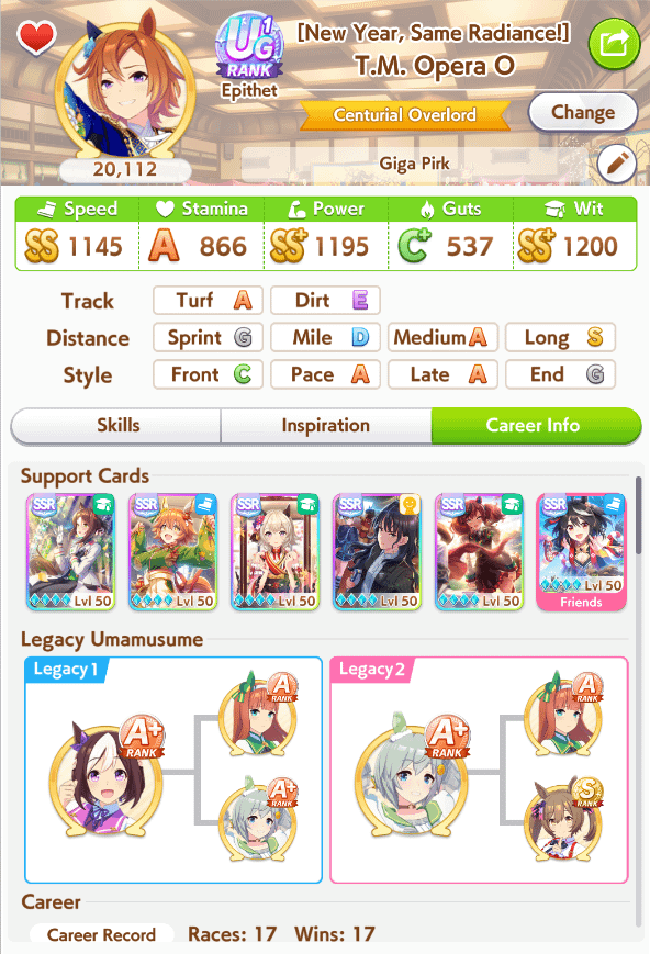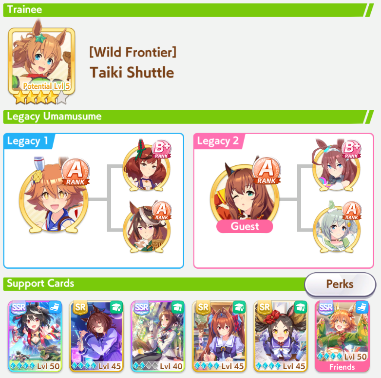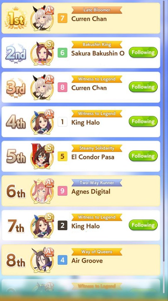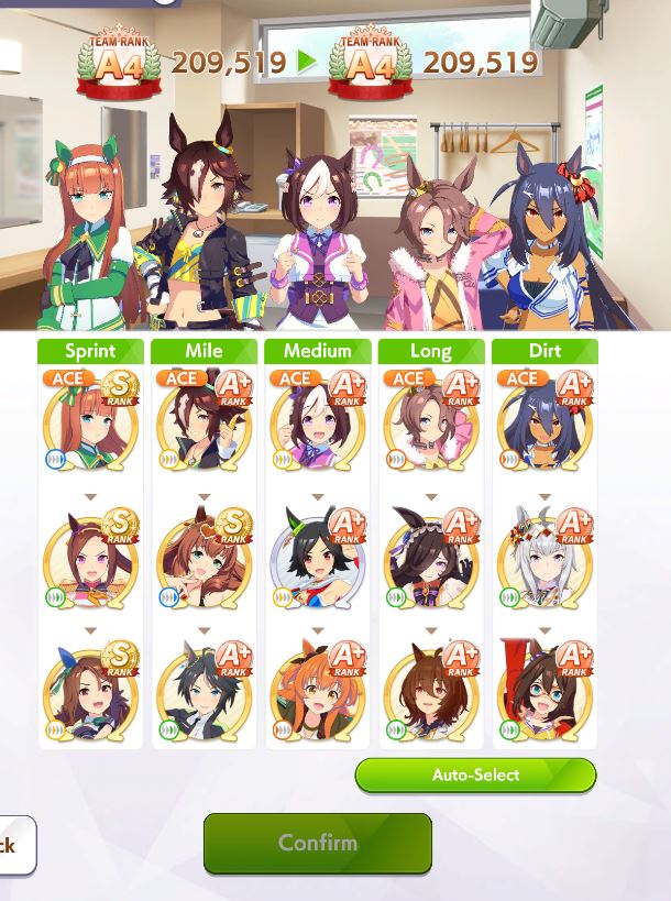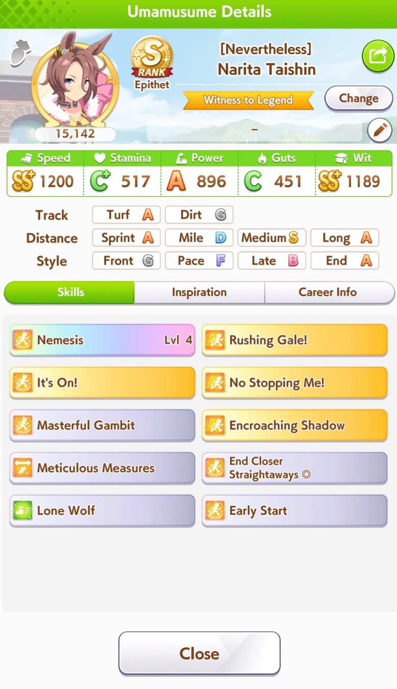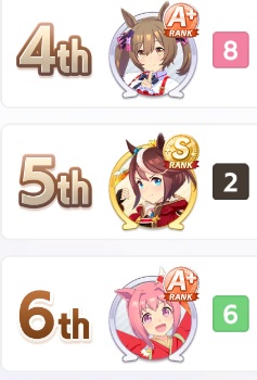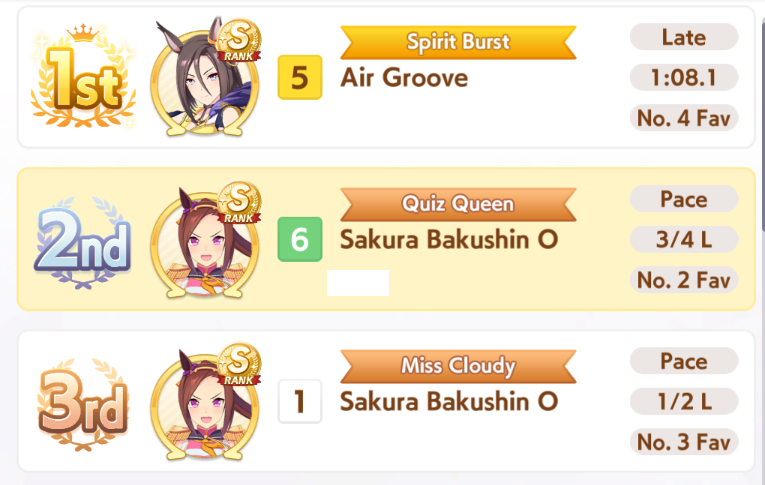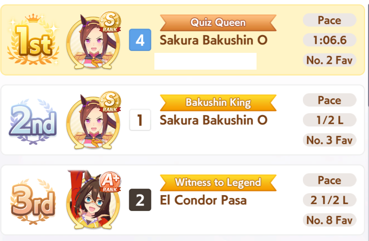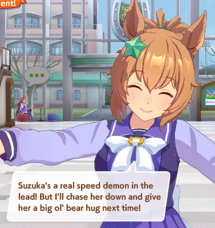 TY, I figured people would want her for the Sprint GP and 3* Turf, I had the right idea. I guess I can use Creek and the Mile Pasa for my Bakushin runs. Arigatou.
