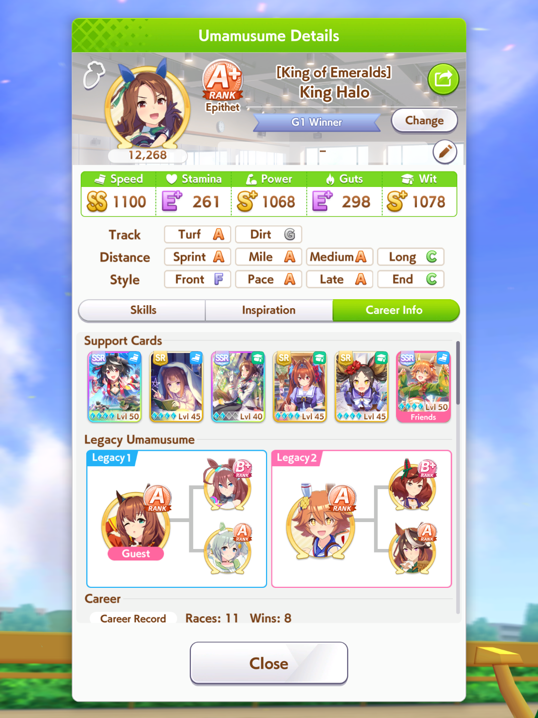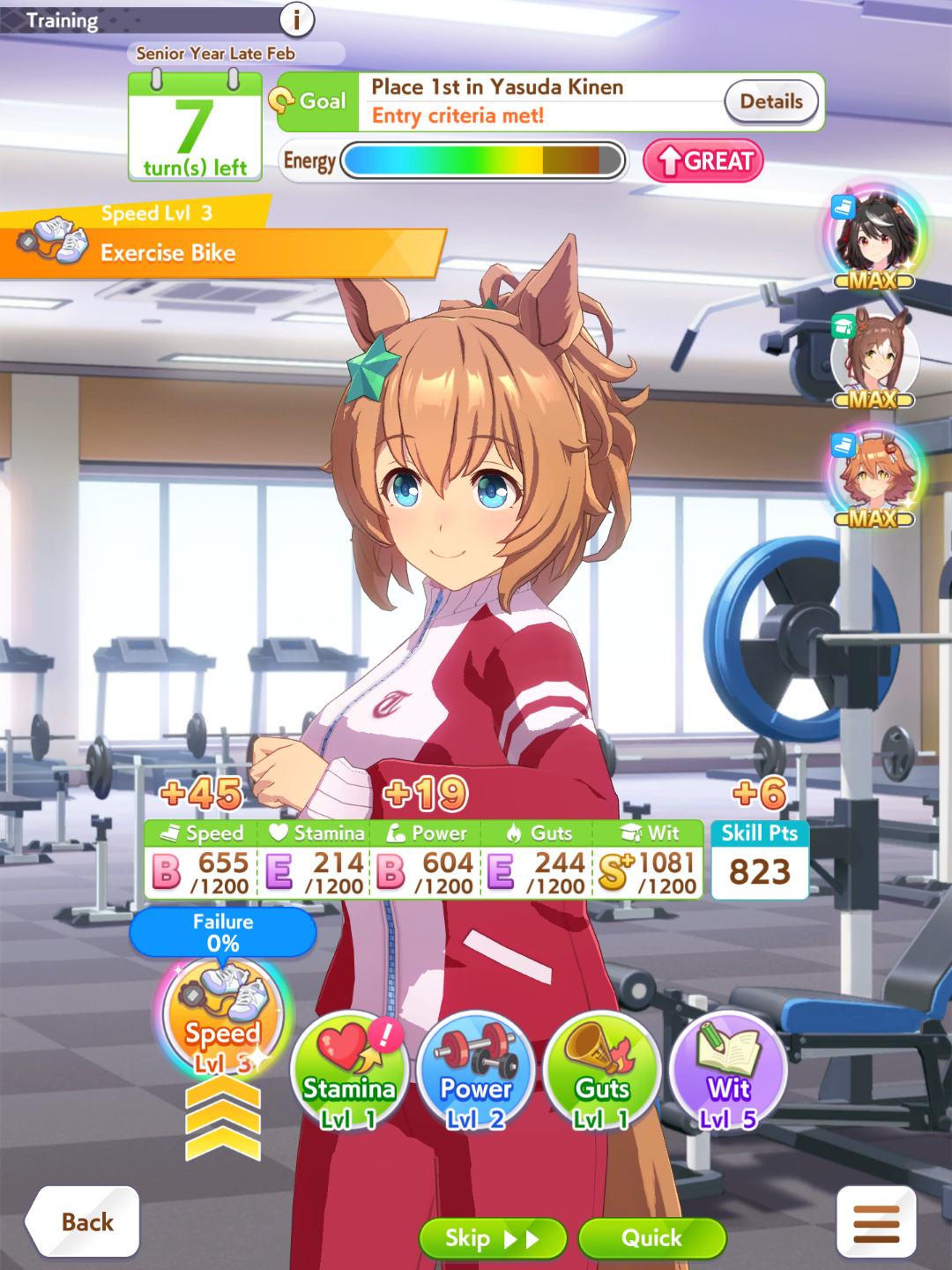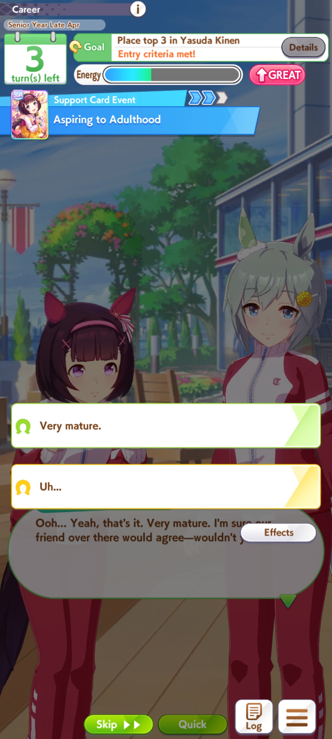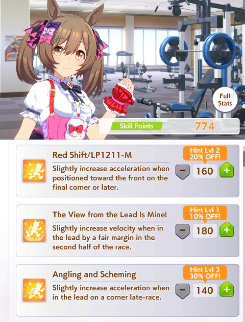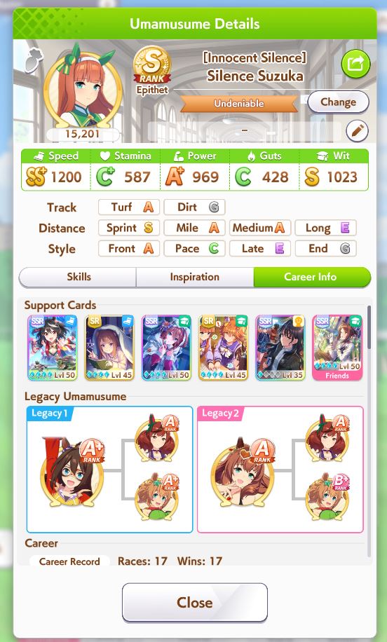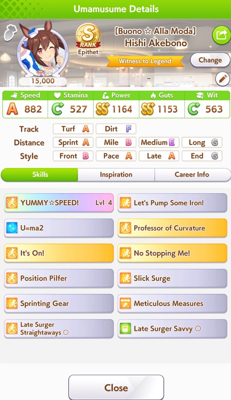 TY, I figured people would want her for the Sprint GP and 3* Turf, I had the right idea. I guess I can use Creek and the Mile Pasa for my Bakushin runs. Arigatou.