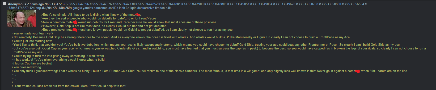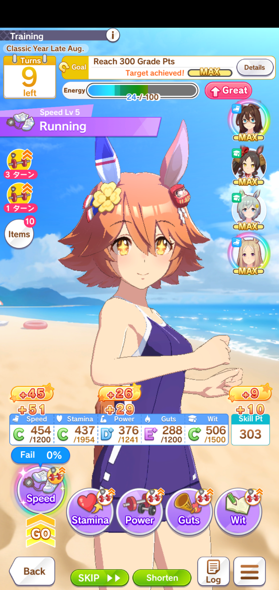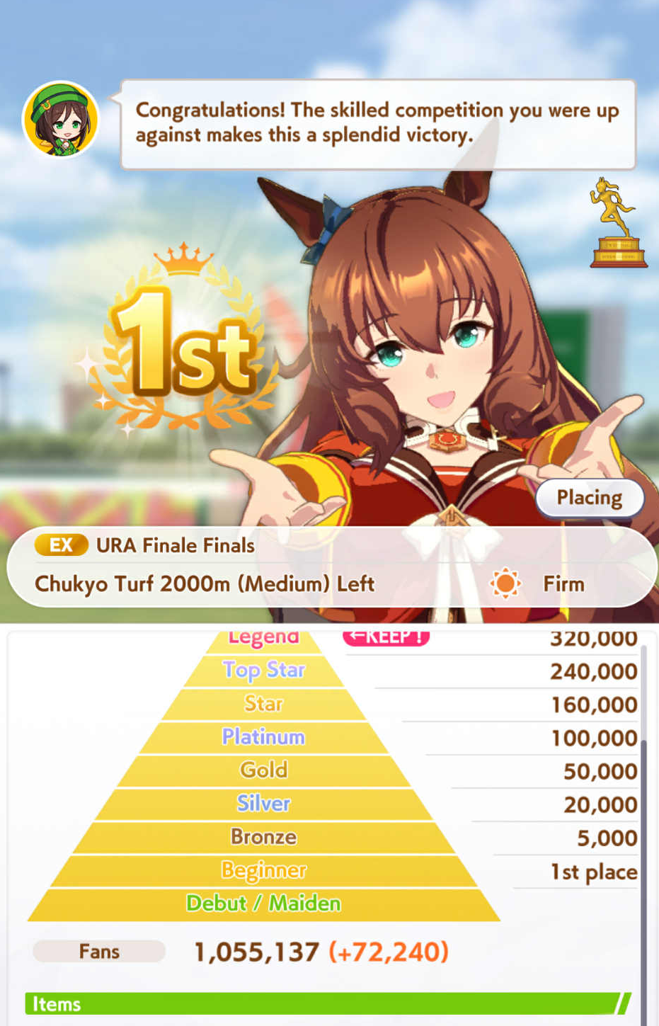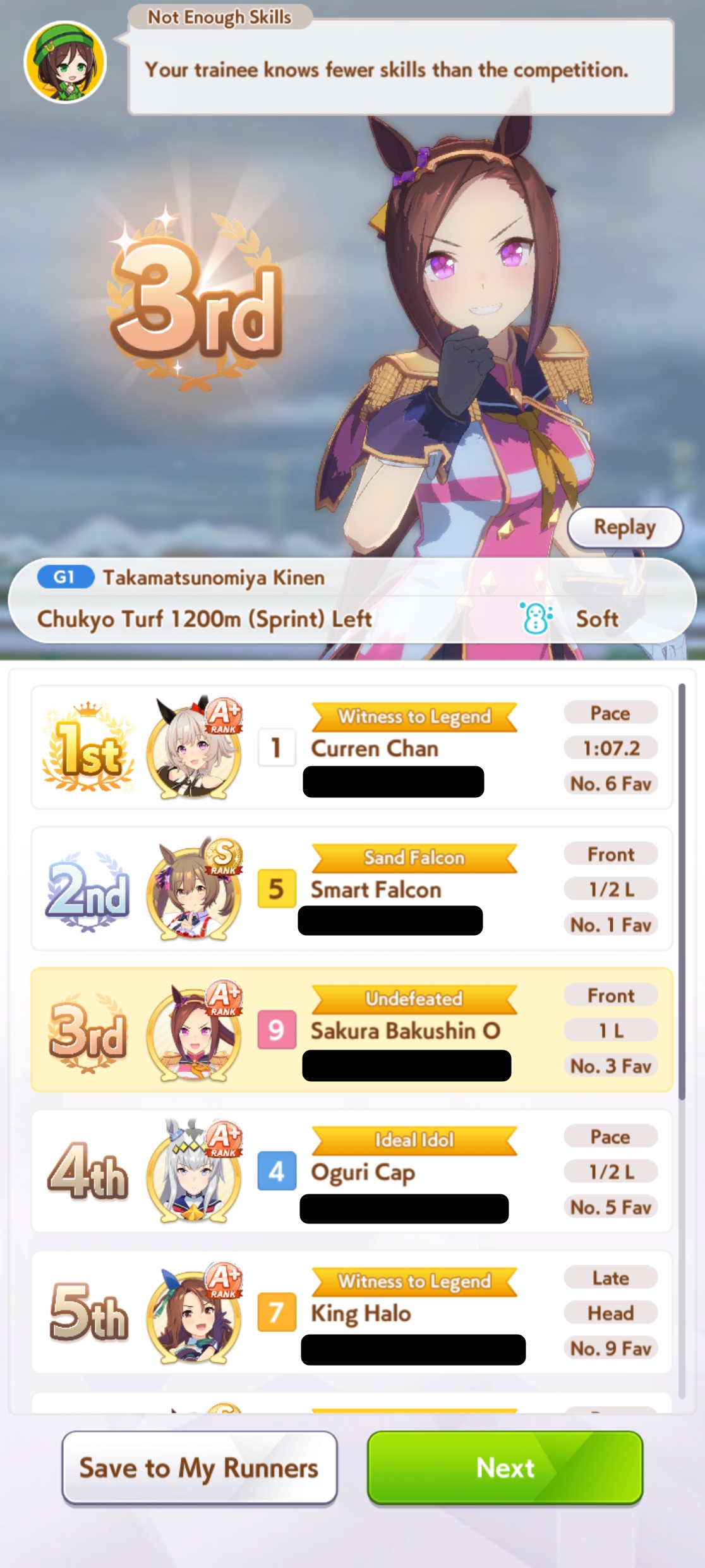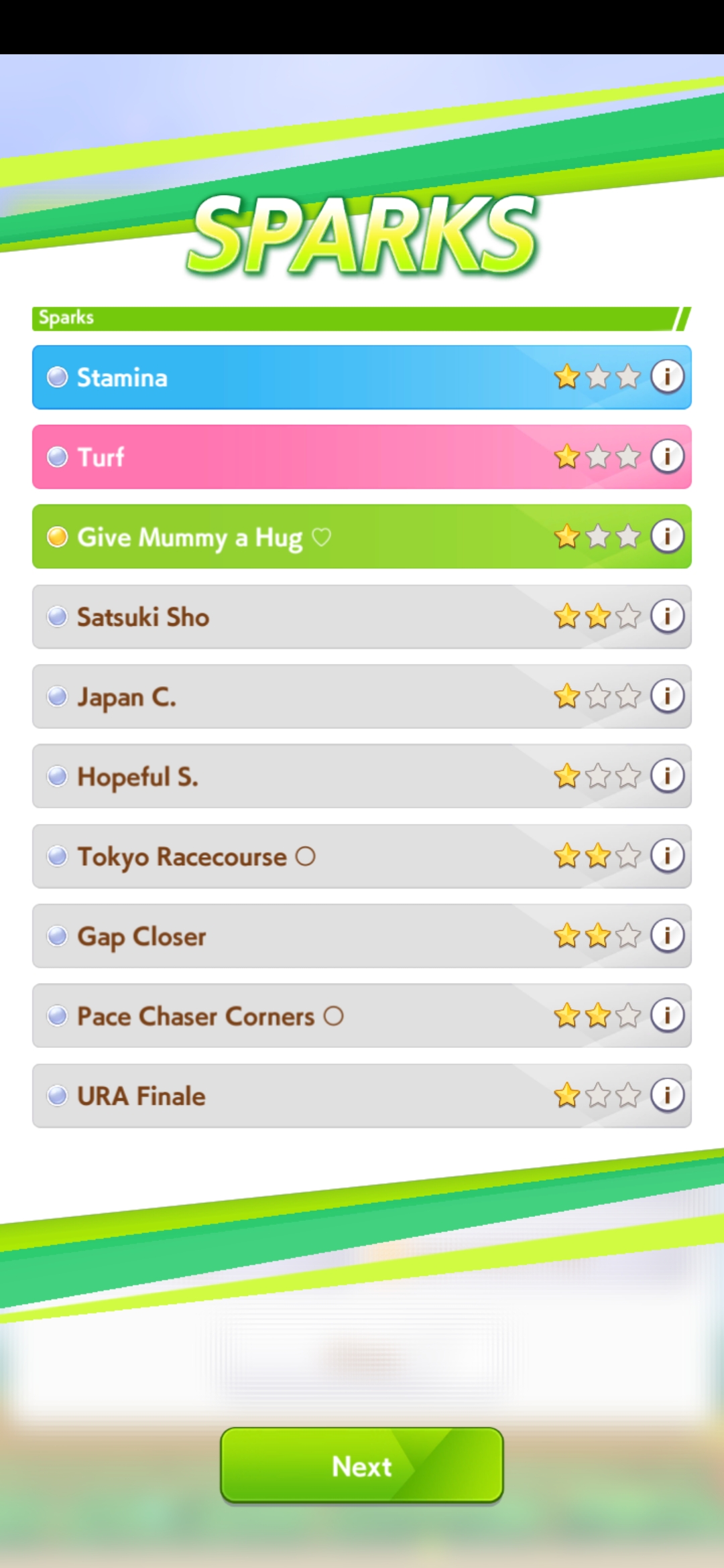 TY, I figured people would want her for the Sprint GP and 3* Turf, I had the right idea. I guess I can use Creek and the Mile Pasa for my Bakushin runs. Arigatou.