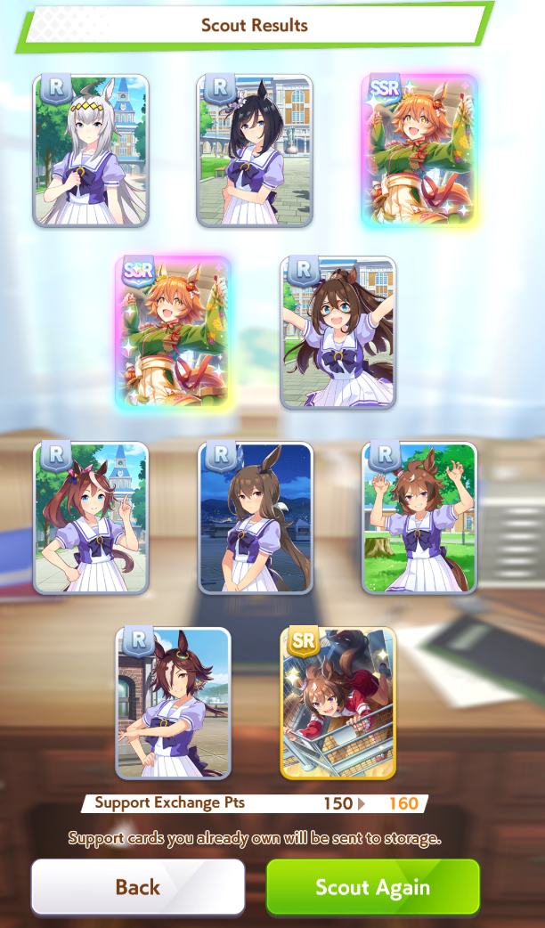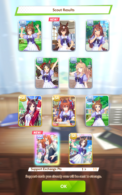 Current Rate Up Support Cards: SSR Admire Vega (Power), SSR Matikanefukukitaru (Speed)