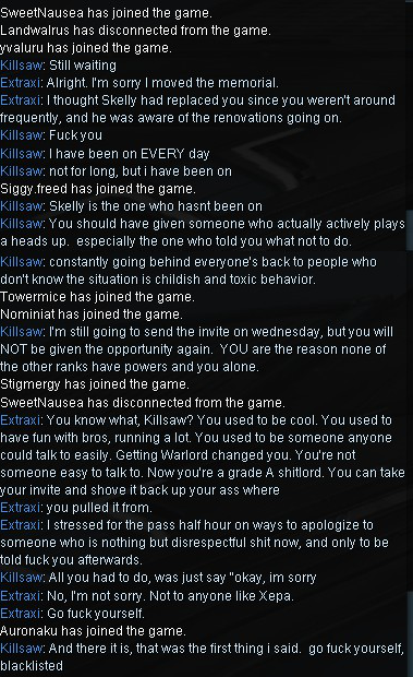 Three years ago when I started I wanted to join warbros. Couldn't get any response so I joined a random clan siphoned every MR item out of it left it and made my own clan. Now I'm LR5 with a 110+ person moon clan. I wanted to thank killsaw for not responding because it motivated me to become a clan leader and meet many new people. What I'm saying is that anons should believe in themselves instead of trying to fit in.