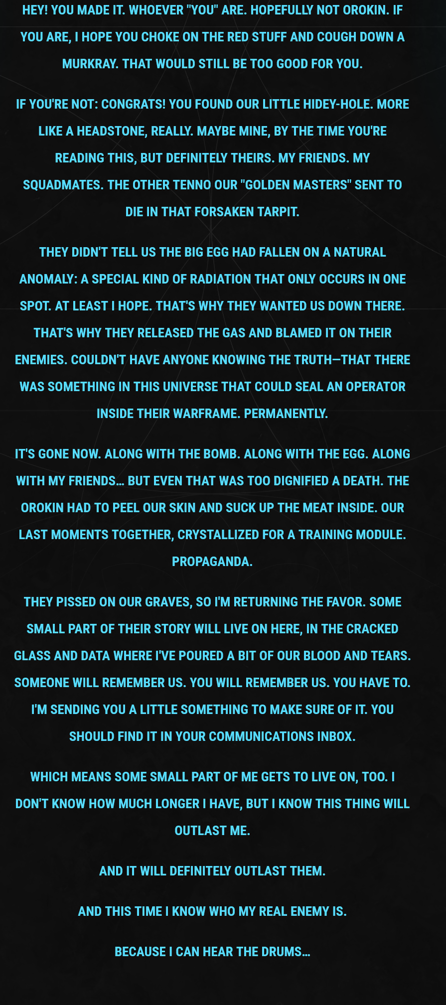 my Warframe is the hand... and I... am the will....