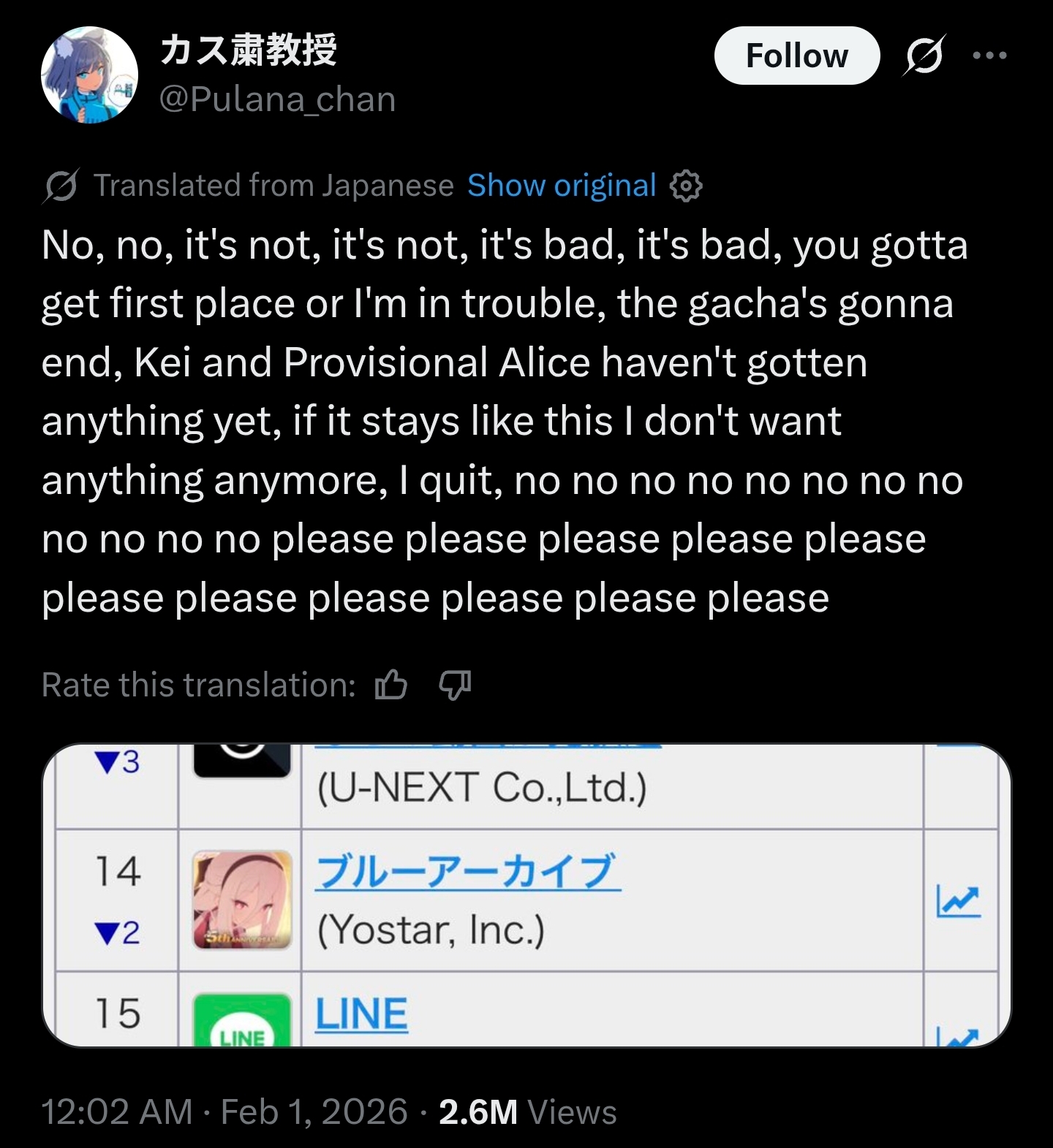 >>555929887They're probably gonna give you 10-pull ticket for reaching the #1 on the Google Play ranking today
