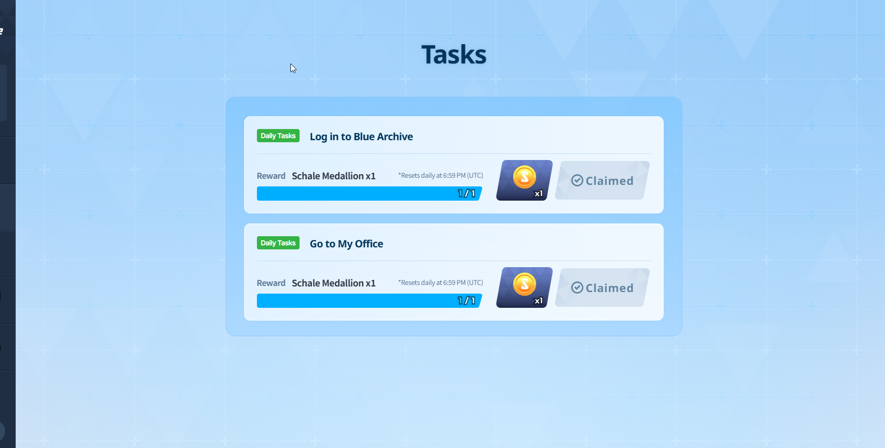 Previous Thread: >>555906340>Guides, Resources and useful links:https://rentry.org/bagguides>/bag/Circles/Clubs/Friends:https://rentry.org/holdingthebag>4koma, Manga, Side Content, PVs & Shortshttps://rentry.org/bacontent>>(JP) – JST>Banners:>1/29 After Maint – 2/5 10:59Aris (Battle – Limited)Kei (Limited)Hoshino (Battle – Limited)Shiroko*Terror (Limited)>News:Patch notes: https://bluearchive.jp/news/newsJump/624>Events:Steel Continent Assault: Malkuth Battle – 1/29 After Maint – 2/12 10:595th Anniversary Login Bonus – 1/20 After Maint – 2/12 10:59>Content:Joint Firing Drill (Defense) – 1/29 After Maint – 2/5 3:59Limit Break Assault: Chokmah (Field w/Special Armor) – 1/21 11:00 – 2/12 3:593x Bounty/Normal/Hard – 1/29 4:00 – 2/5 3:593x Commission/Lesson – 2/5 4:00 – 2/12 3:592x Account EXP – 2/7 4:00 – 2/9 3:59>>(GLOBAL) – UTC>Banners:>1/27 After Maint – 2/10 1:59Misaki (Swimsuit)Saori (Swimsuit – Limited)Hiyori (Swimsuit – Limited)Neru (Bunny – Limited)Karin (Bunny – Limited)Akane (Bunny)>News:Patch notes: https://forum.nexon.com/bluearchive-en/board_view?thread=3355429>Events:Sheside outside – 1/27 After Maint – 2/10 1:59The Arius District's Emergency Class Mission – 2/3 2:00 – 3/10 1:59My Office: https://bluearchive.nexon.com/user/myoffice>Content:Joint Firing Drill (Shooting) – 1/27 2:00 – 2/2 18:59Grand Assault: Chesed (Field – Torment w/Elastic Armor) – 2/3 2:00 – 2/9 18:59Limit Break Assault: Chokmah (Field – w/Special Armor) – 1/14 2:00 – 2/9 18:592x Lesson/Scrimmage – 1/26 19:00 – 2/2 18:592x Commissions/Hard – 2/2 19:00 – 2/9 18:592x Bounty/Scrimmage – 2/9 19:00 – 2/16 18:592x Account EXP – 2/13 19:00 – 2/15 18:592x Normal – 2/16 19:00 – 2/23 18:592x Account EXP – 2/20 19:00 – 2/22 18:59