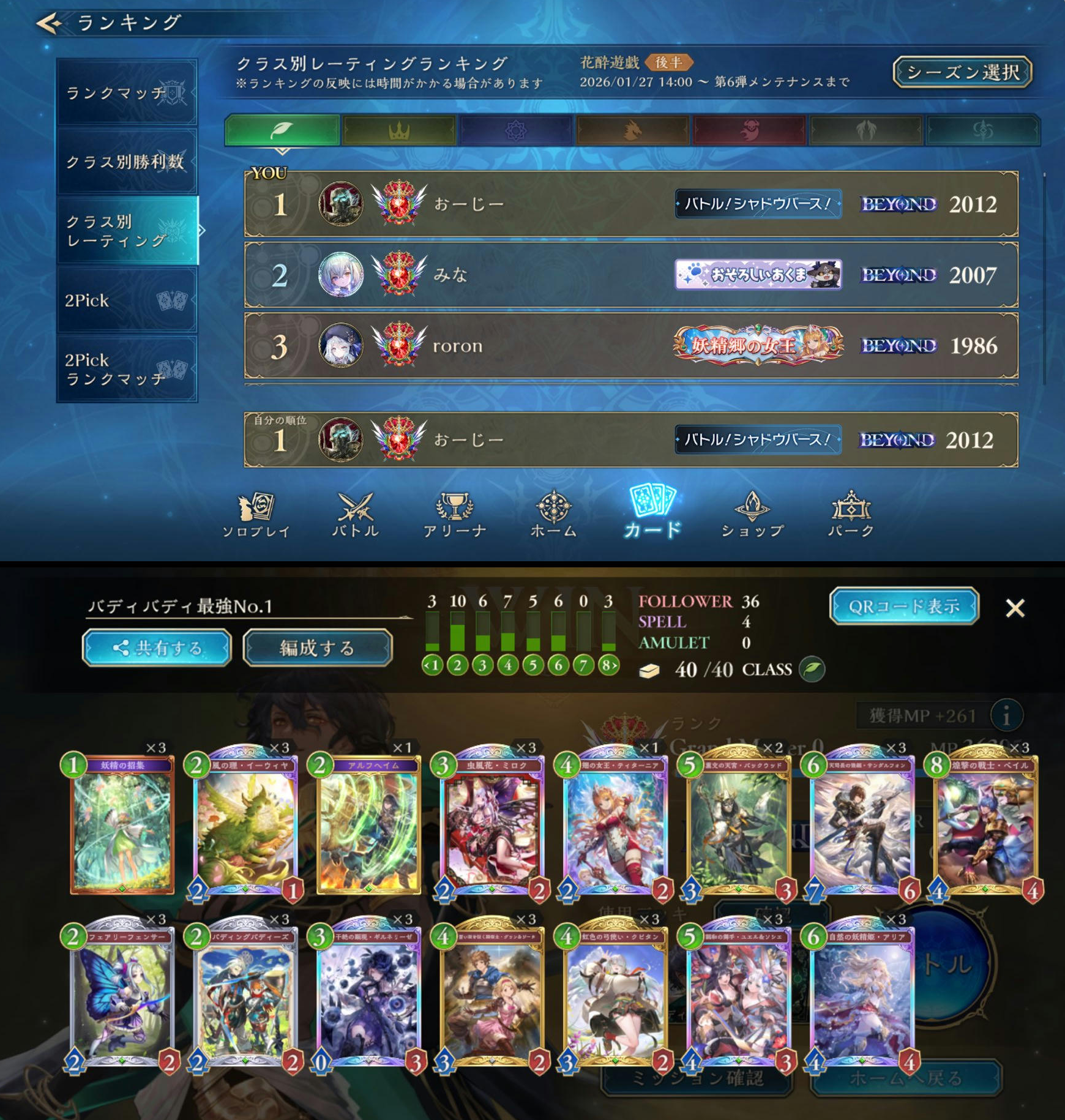 >NewsUpdate to Version 1.5.10!https://shadowverse-wb.com/en/news/detail/?id=01KFA4ZYM8FGF4VTTT1XXQCPN4Dungeon Crawl!https://shadowverse-wb.com/en/news/detail/?id=01KF7Q36C7P5HRVK7E55AK2Q6NRegistration for the Shadowverse Online Championship!https://shadowverse-wb.com/en/news/detail/?id=01KEX4K7QRAR41V5Y8ZJ98J974>5th Card Set: Blossoming Fatehttps://shadowverse-wb.com/en/cards/pack/blossoming-fatehttps://www.youtube.com/watch?v=vr57zb3vUIE>Resource Guide (decks, tier lists, guilds, stickers, and leader trailers)https://rentry.org/svg-resourcesOfficial website & deck portalhttps://shadowverse-wb.com/en/https://shadowverse-wb.com/en/deck/Shadowverse Animehttps://anime.shadowverse.jpShadowverse Evolve TCGhttps://en.shadowverse-evolve.com//svg/'s card & leader database and deckbuilder (classic)https://svgdb.meShadowverse: World's Beyond Card Databasehttps://mhmkhlrdn.github.io/WBGDB/SiteLast Showdown: >>555813385
