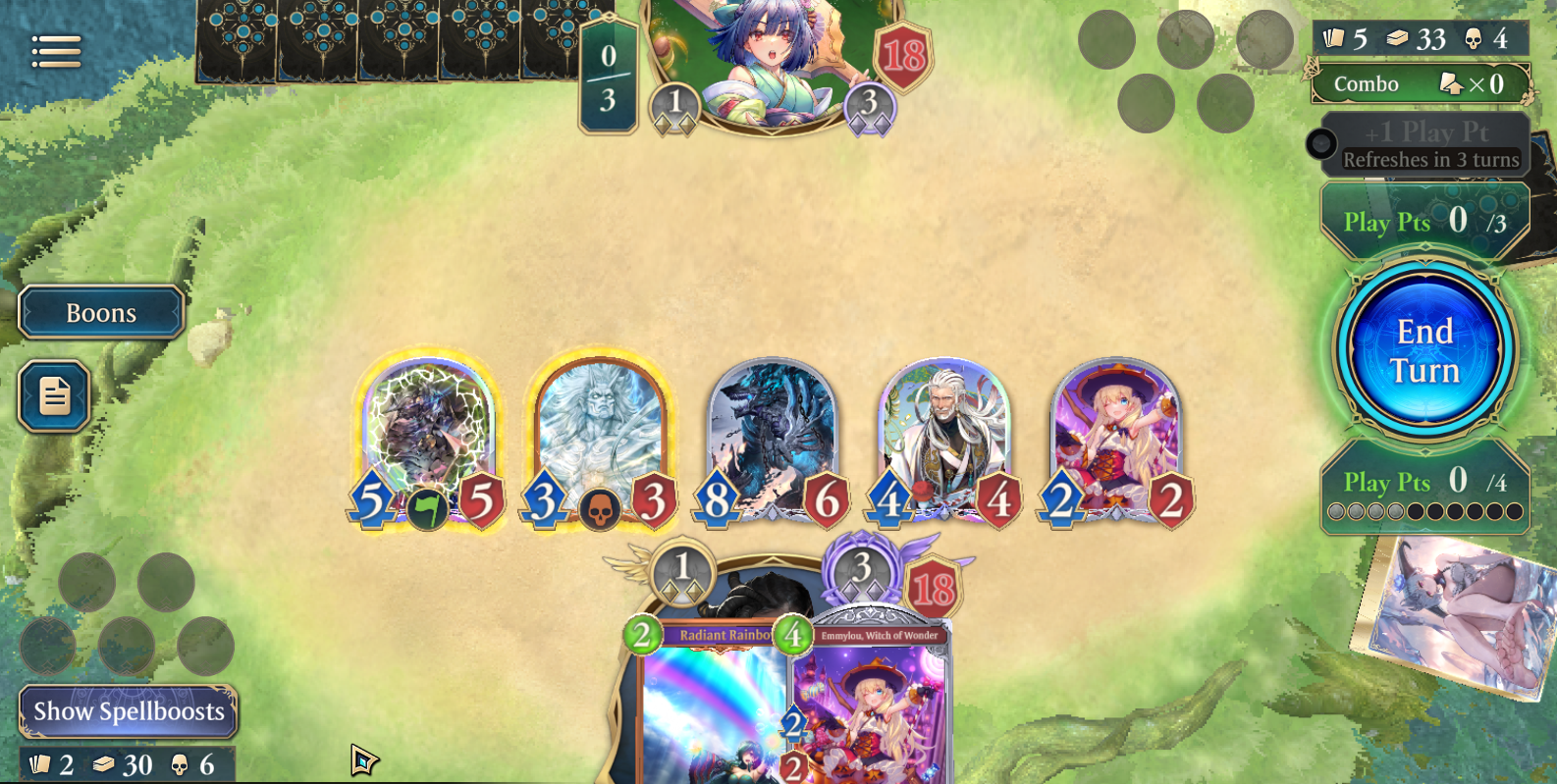>>556053115put all the on spellboost cards on your deck like ara, blaze destroyers and wamsdo not put the spellboost cards like annegrea and kuon, you get the spellboosts for free with the boons