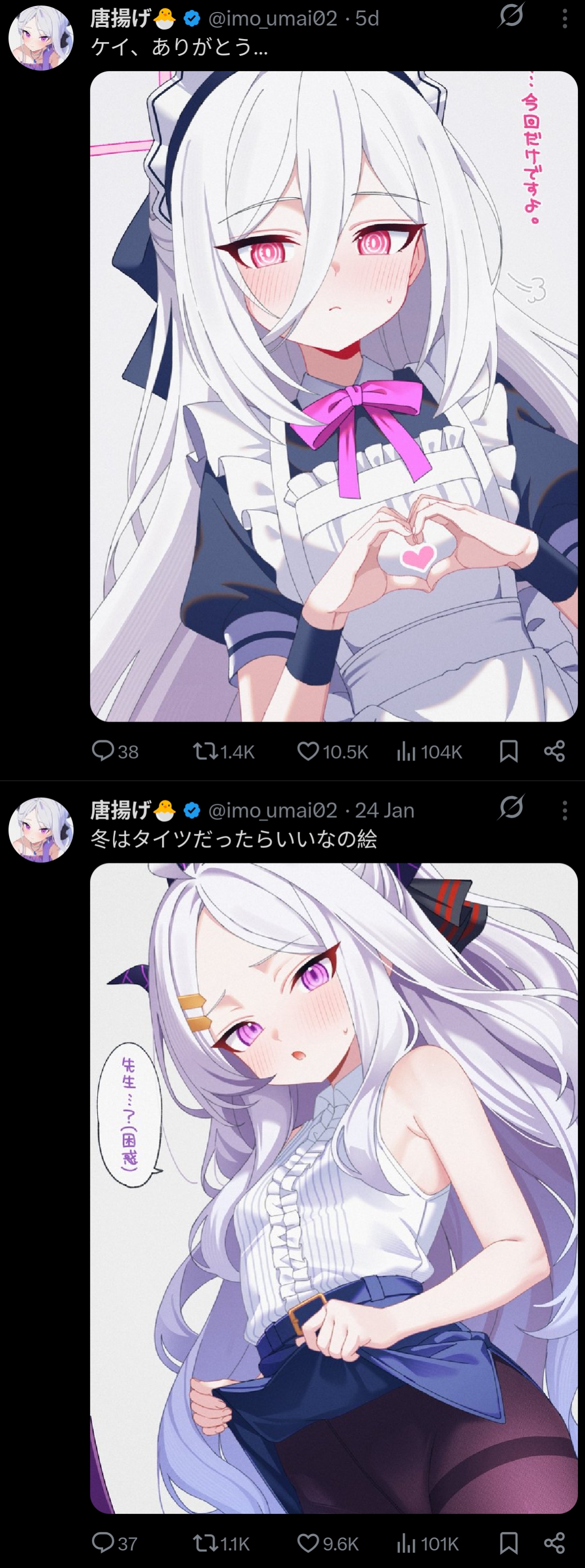 The February affection check is currently open for 9 hours. If you haven't already please post your maxed studentwife with 30+ affection. Including her alt is optional and a nice flex but her base is what I'm looking for.>Can I post her if she isn't maxed?Of course, your work in progress is always a joy to see. Remember the climb to the peak isn't a race.