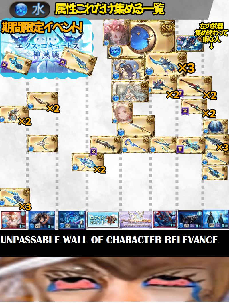 >>556164618with 600 rolls you don't have all the characters that would make endgame easy.you also don't need all the gm weapons. once you have the relevant ones it's better to have all the characters and if you mistakenly skip a seasonal, you should just siero her rather than waste it on a situational moon weapon. compare trying to play fire without atum to playing it without higurashi. . or play earth without vrabbit vs without hrunting. linkspick fixes this cheaply for japanese, but for everyone else siero is the only way out. if you spend 300 rolls on a catchup banner or 3% banner you'll be further behind as a f2p.