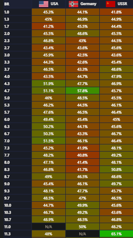 >>555982981>Have Russia, Japan, Germany, Swede, and France>Have all my favorite vehicles and then some >Don't care for anything else and just play for fun bouncing between BR'sTop Tier Russia is disgusting right now , and just an auto loss if you can't deal with the BMPT horde.
