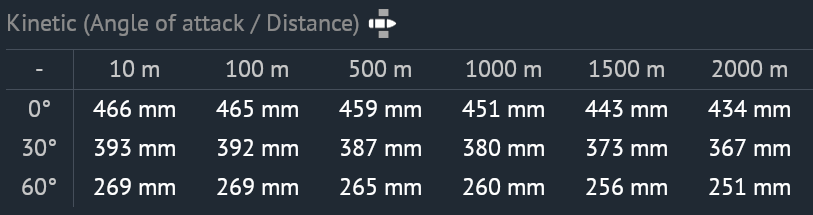 >>556148238Pen at 100m is not relevant or even accurate because it's going to trick new players. You also have a little chart that is more accurate, but they bastardized that chart for HE-based shells like I said and again to new players' detriment.