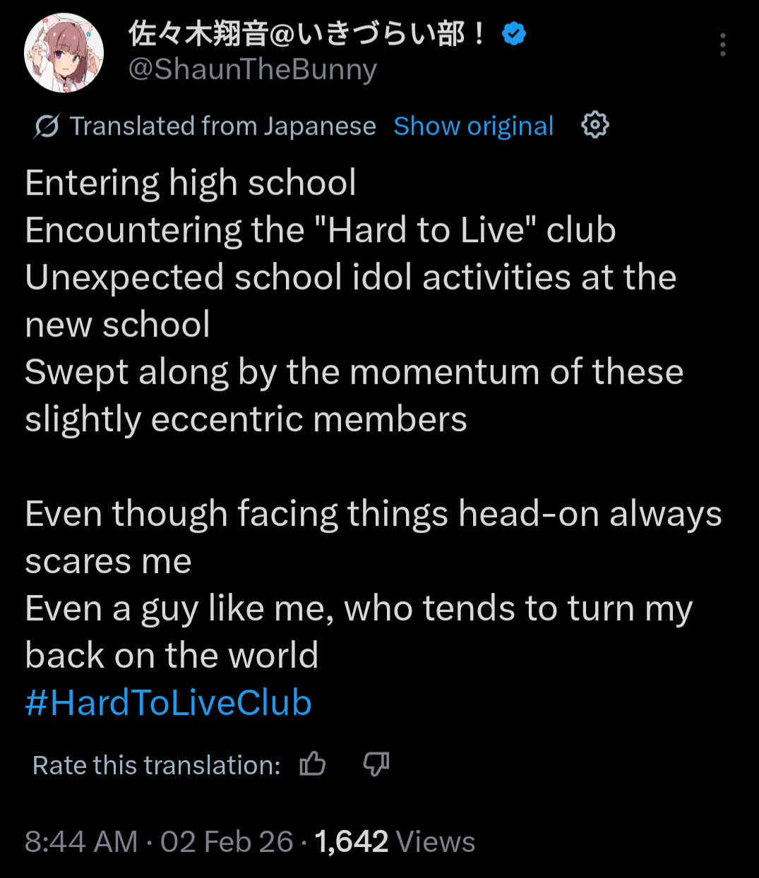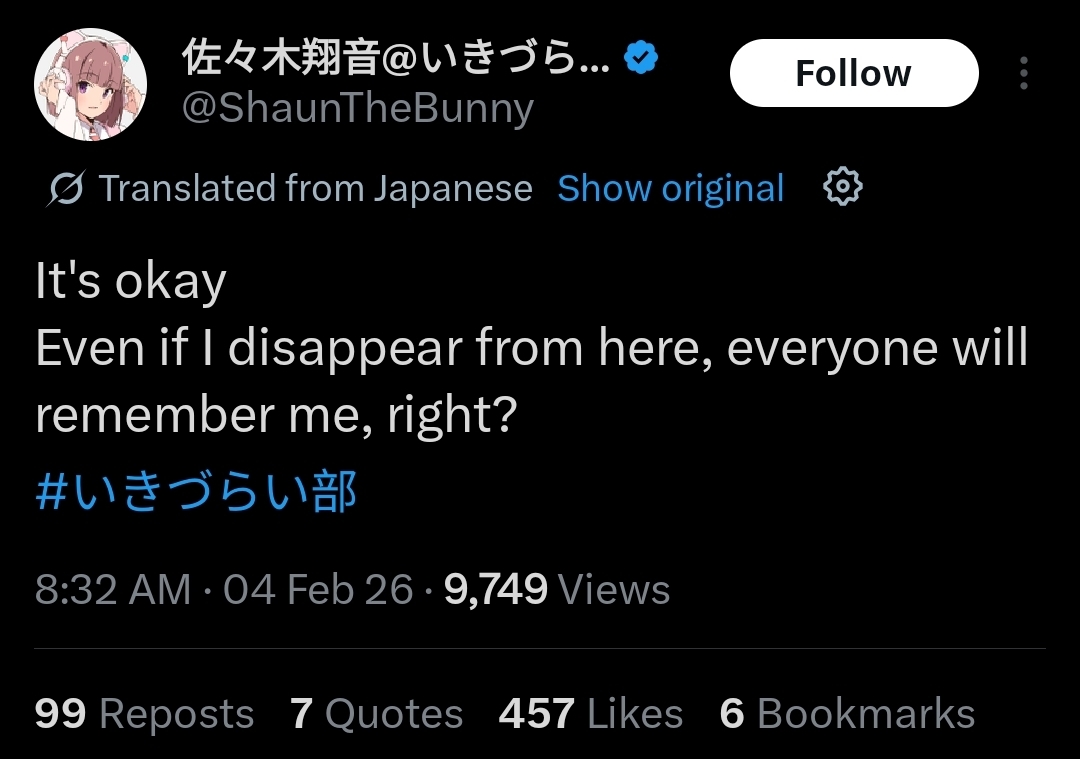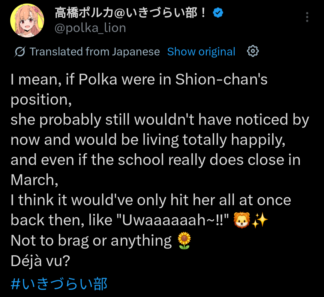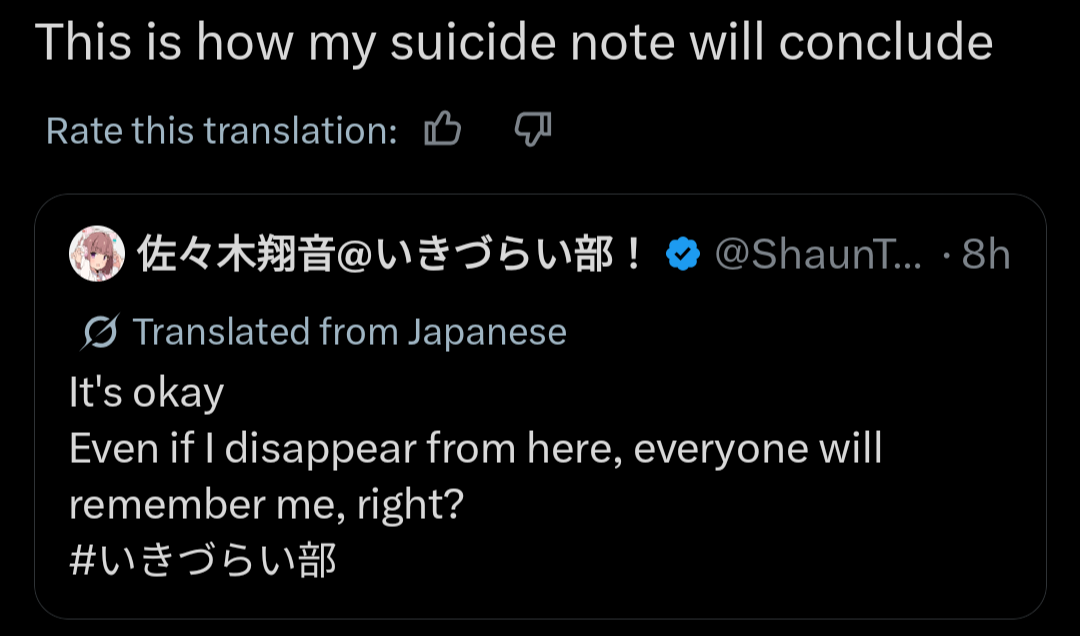 If this tweet isn't a banger, Shion is gonna kill herself but for real this time.