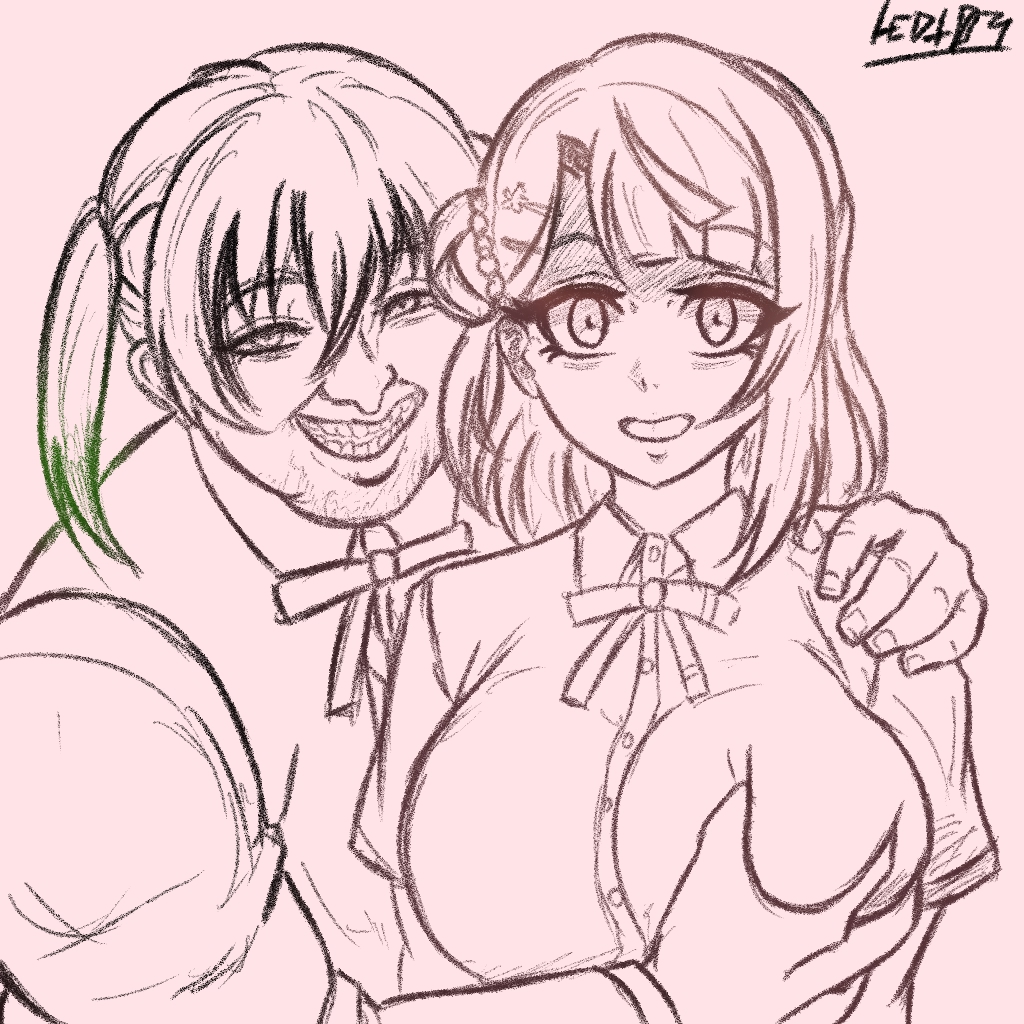 The new Nijigasaki game was revealed to me in a dream. It was action platformer similar to Castlevania SOTN with Yu as the protagonist. The first chapter of the game was set in a ruined castle haunted by Shioriko the vampire. She was invulnerable throughout this section of the game, leaving your only option to run away from her when she appears. Eventually you find Shizuku the witch, who has the power to stop Shioriko. However, depending on some condition, she will either help or kill the player. Since I was not able to find whatever condition causes Shizuku to help you, I was unable to progress past this point. I have drawn this screen of the game because it will not leave my head. I hope we learn what happens next some day.