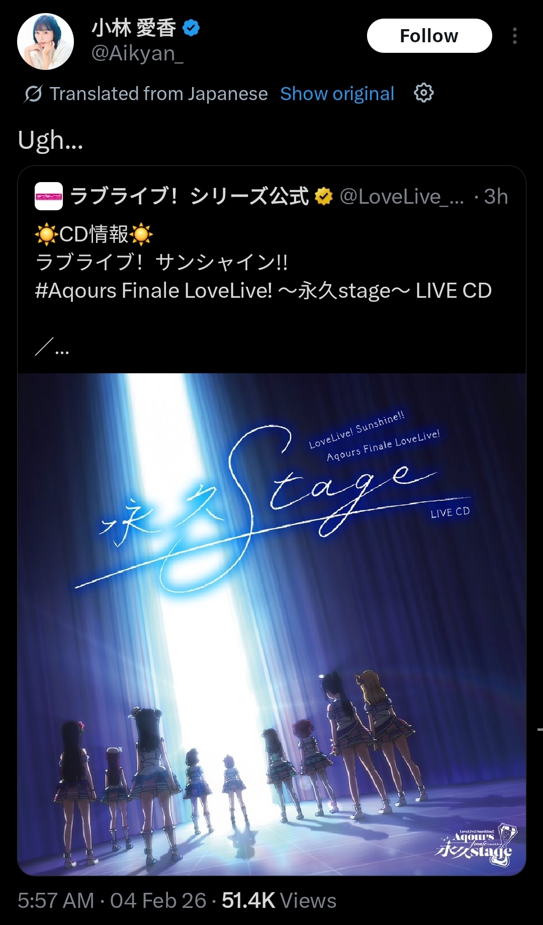>>555970970>>>fixThere's nothing to "fix". Liella is still hugely successfull