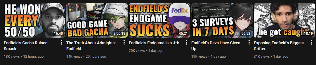 Remember this well editionPrevious thread: >>555957294>Official Websitehttps://endfield.gryphline.com/en-us>Official EN X (NEWS HERE)https://x.com/AKEndfield>Chartered Headhunting ScheduleJanuary 21st to February 7th --- "Scars of the Forge", (Laevatain)February 7th to February 24th --- "The Floaty Messenger", (Gilberta)February 24th to March 13th --- "Hues of Passion", (Yvonne)>Reward CodesENDFIELDGIFTENDFIELD4PC>Twitch Dropshttps://endfield.gryphline.com/special/third-party-binding?channel=twitch>Voyage to the Stars (Ongoing until March 4th)https://endfield.gryphline.com/activity/voyage-to-the-stars/en-us/>Special Launch Streamhttps://www.youtube.com/watch?v=dz2g_D52NR0 >Official Release Trailerhttps://www.youtube.com/watch?v=oJ00ggFb8A0 >Official Release PV'shttps://www.youtube.com/watch?v=5Xm45NwWOlo https://www.youtube.com/watch?v=UPpeeft1-8o https://www.youtube.com/watch?v=tN80M6IEMo0 >Wikishttps://wiki.skport.com/endfield (Official)https://perlica.moehttps://warfarin.wiki/enhttps://endfield.wiki.gg/>Blueprint Guideshttps://talospioneers.com/en>Stickershttps://drive.google.com/drive/folders/13KH3L6QPIKkVH7pBddv4uxwmwJsnOtklhttps://drive.google.com/drive/folders/1OuVtjv1k-9c3M6n7d4PX3CGG5bkwH04ahttps://drive.google.com/drive/folders/1AStB8bzFk3lSwMwczWPkFYCBrZe0vHOghttps://drive.google.com/drive/folders/1yS0lqUhxf8tBRtpDFfCU1y16IS2sSeF7>Fr/end/sSubmit your info, /end/min:https://forms.gle/Fo7BhZMKaKqiWyL19View other /end/mins:https://docs.google.com/spreadsheets/d/1YtxiDss0hgEQhLlZgpfzyGrJrzUcqDzOS9T6IH-BiVc/edit?usp=sharing
