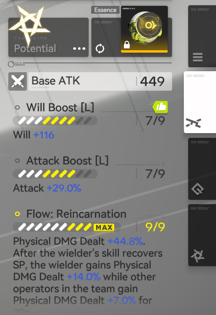 >>555979643the lines on the weaponexamplelae's weapon has intellect, attack, twilightyou farm wuling essence dungeon until you get one with 3 matching statsanything else is a brick