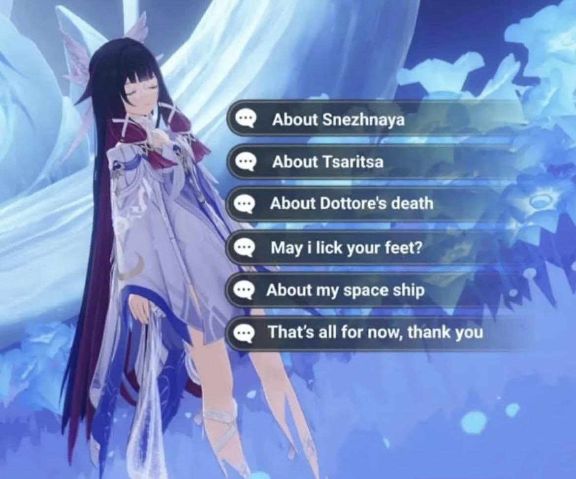 Kek if Bina at her weakest can still mog the likes of Wuwa, Endfield, FGO and LADScum, what chance do the likes of Flopka, Flophen or god forbid Floptorre have?