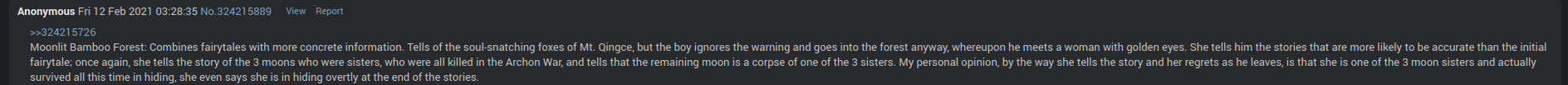 >>556001762The importance of the book is that it introduces us to the 3 moon sisters, not the name of the book itself. Talking about the moon sisters means indirectly referencing the book