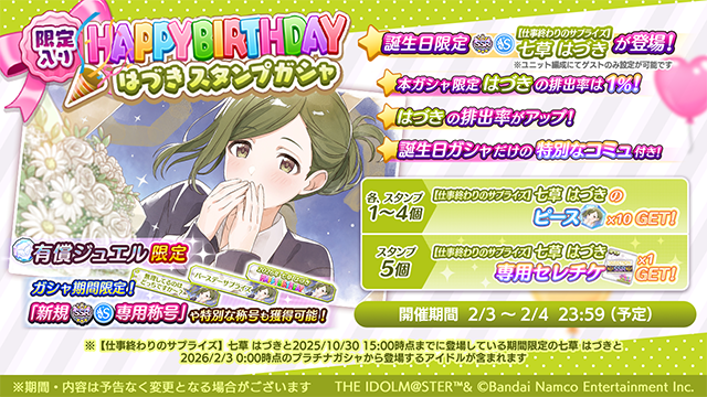 Feb 2nd, 3PM JST to Feb 28th: Million Live x FAMKuji vol.2: >>554029140 >>554029154