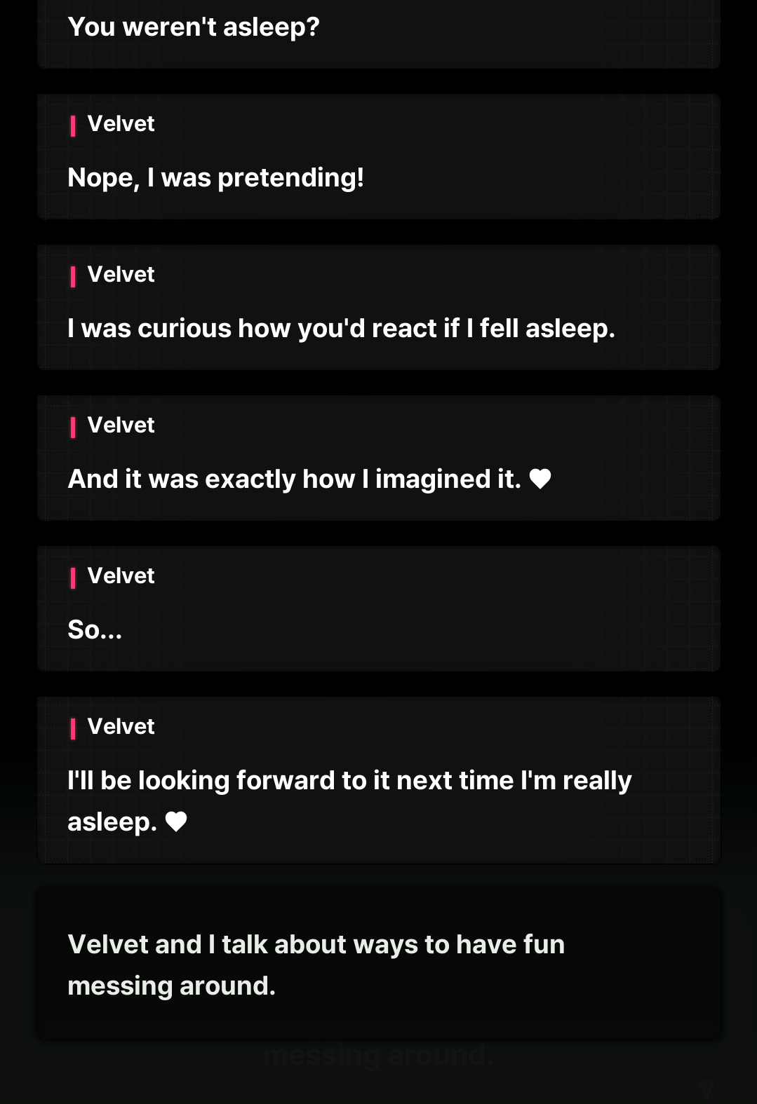 >collab story>wow weird we are here now what is this>this is Cafe Sweety we are short staffed and valentines day is coming up we can't handle the rush>oh wow we happen to work at a cafe we will help>they help with valentines rush>yay>oh is that gatekeeper lets kill him>gatekeeper dies>Collab goes back homeYou getting really upset about how they will start kissing and then kissing all the other girls and forcing you into the chair this will be the extent of the story.