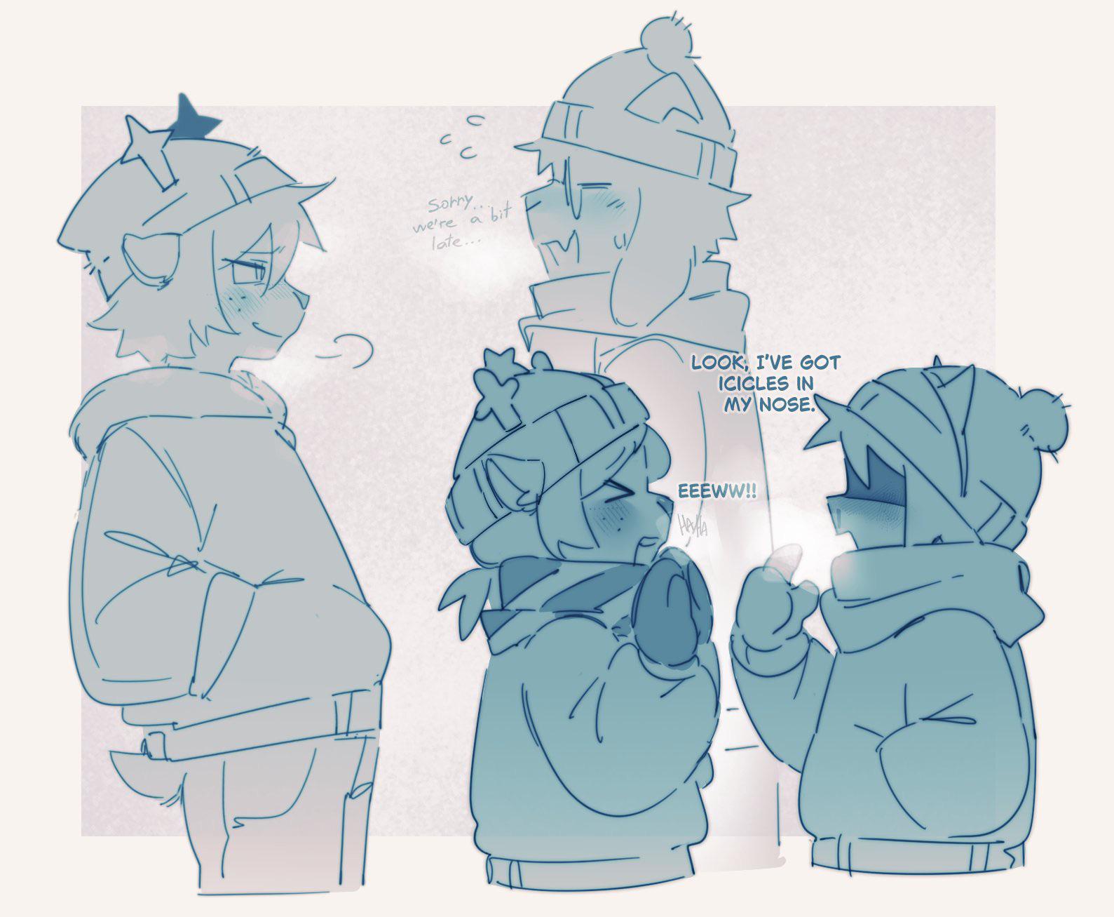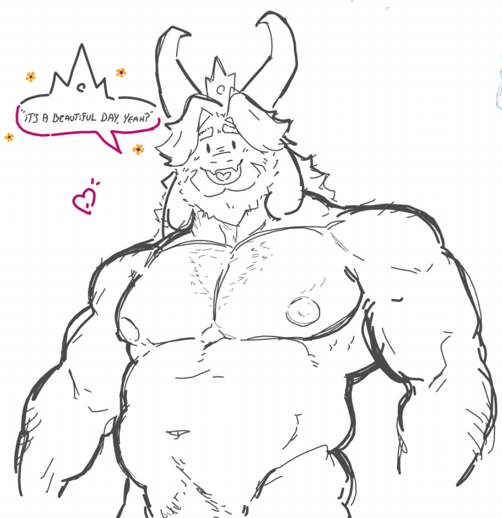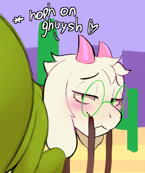 Finding that burying my face within my own hands is insufficient as I try to plan out what spontaneous and romantic gestures I can perform for Asgore over the coming weekend since I've been really wanting to do something of the like for a while, until eventually I simply give up and locate him flipping through a gardening magazine in the living room so I can immerse myself in his big soft hands for a little while instead (he knows I accomplish my most effective brainstorming within this configuration and was thankfully understanding, in return I flipped his pages for him and later made peanut butter cookies to share as a fair exchange of goods and services [I planned to do this anyway]). In the passenger's seat of Asgore's truck besides the goat himself listening to one of his favorite country music CDs as we idle for a minute on the driveway in hopes of warming up both the engine and driver compartment, during which he's cutely alternating between tapping the wheel and squeezing my mittened hand to the rhythm of a song he particularly enjoys (he was also very quietly humming the lyrics in what must have been an attempt to obfuscate his beautiful voice, and although I was tempted to encourage him to let it out I also didn't want him to become embarrassed upon learning that I could hear him so I simply resolved to motivate him slowly over time). Reconvening with Asgore after he finishes harvesting some mixed berries from his backyard fruit garden into a bowl on the kitchen counter and I finally complete tidying every room in the house, and after a while of sitting there I look over and ask if he would like to make out a little as a reward for concluding our individual businesses (he claimed he should probably grab a shower first but I countered that he smelled excellent from digging around in his garden and probably tasted even better due to sampling some of the berries, but gradually we reached a mutual agreement of smooching in the shower together and shook on it)