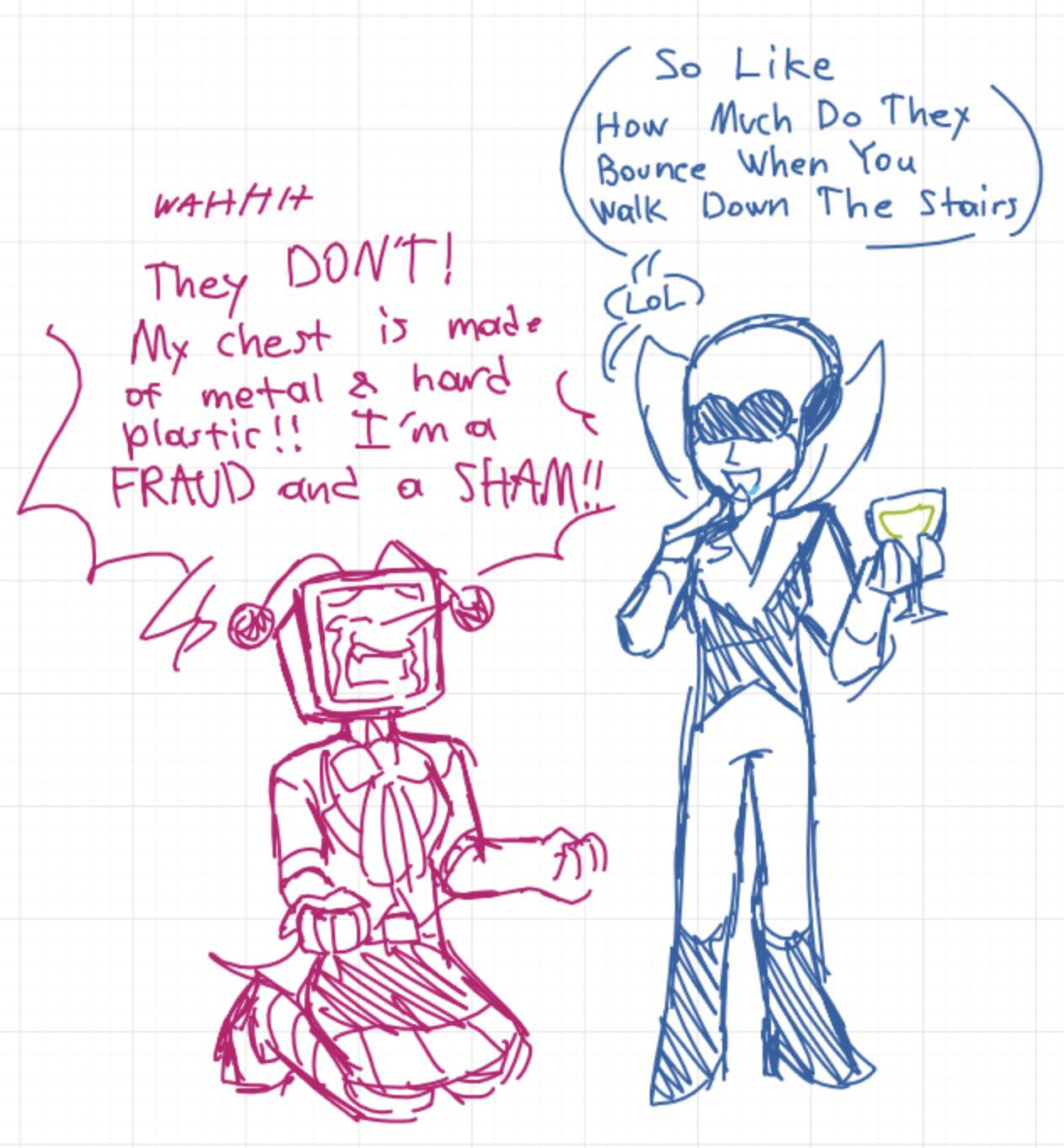 >>556063203I unironically hope Undertale or Deltarune gets an animated show just to see where that can go.
